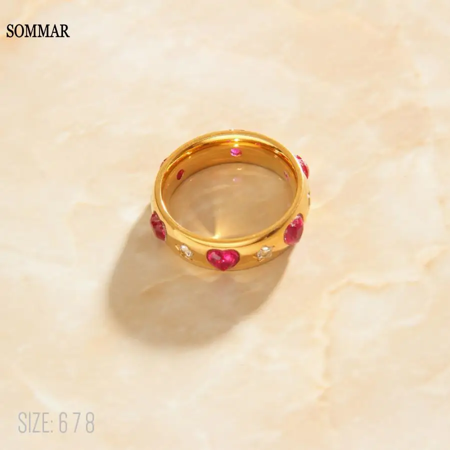 SOMMAR 2021 прекрасное 18KGP Золотое наполненное Размер 6 7 8 женское кольцо Красная любовь искусственная кожа мужские ювелирные изделия европейский стиль