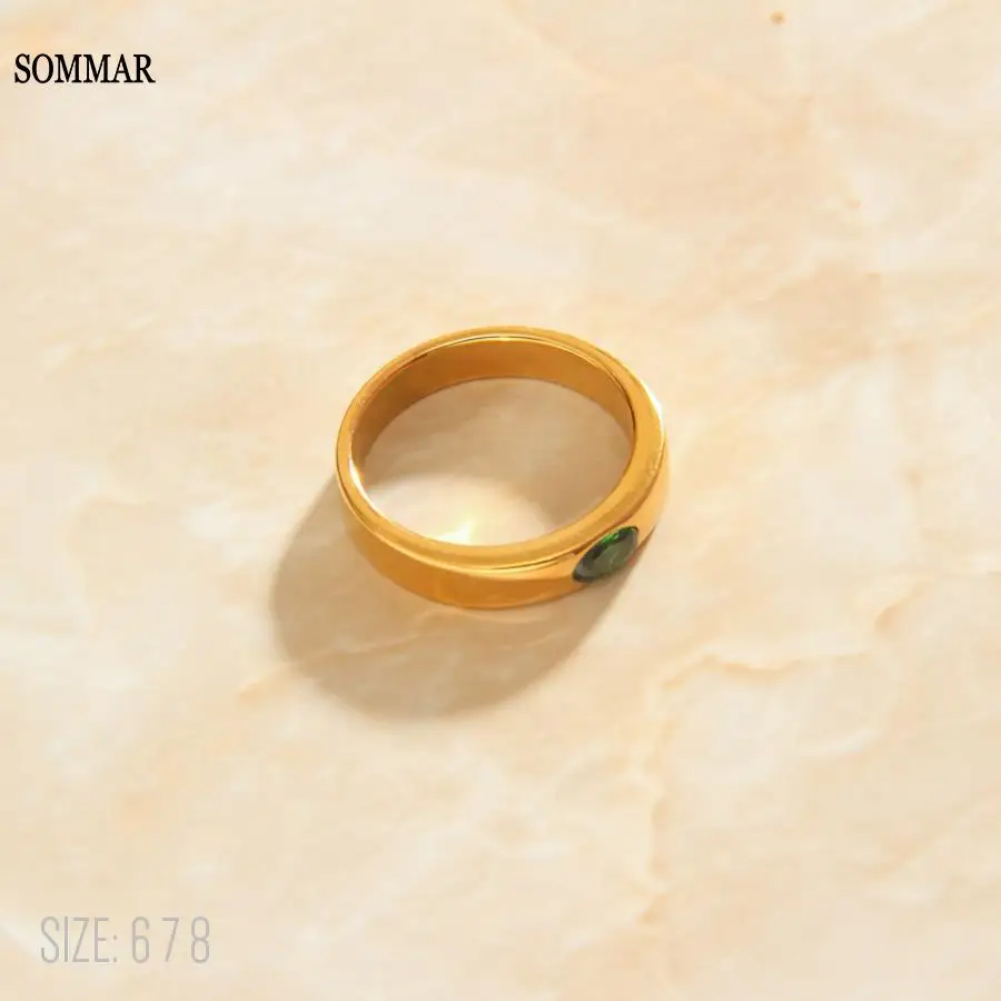 SOMMAR подарок на день рождения золотой цвет Размер 6 7 8 Кольцо для женщин зеленый конский глаз циркониевое Кольцо мужское свадебное украшение