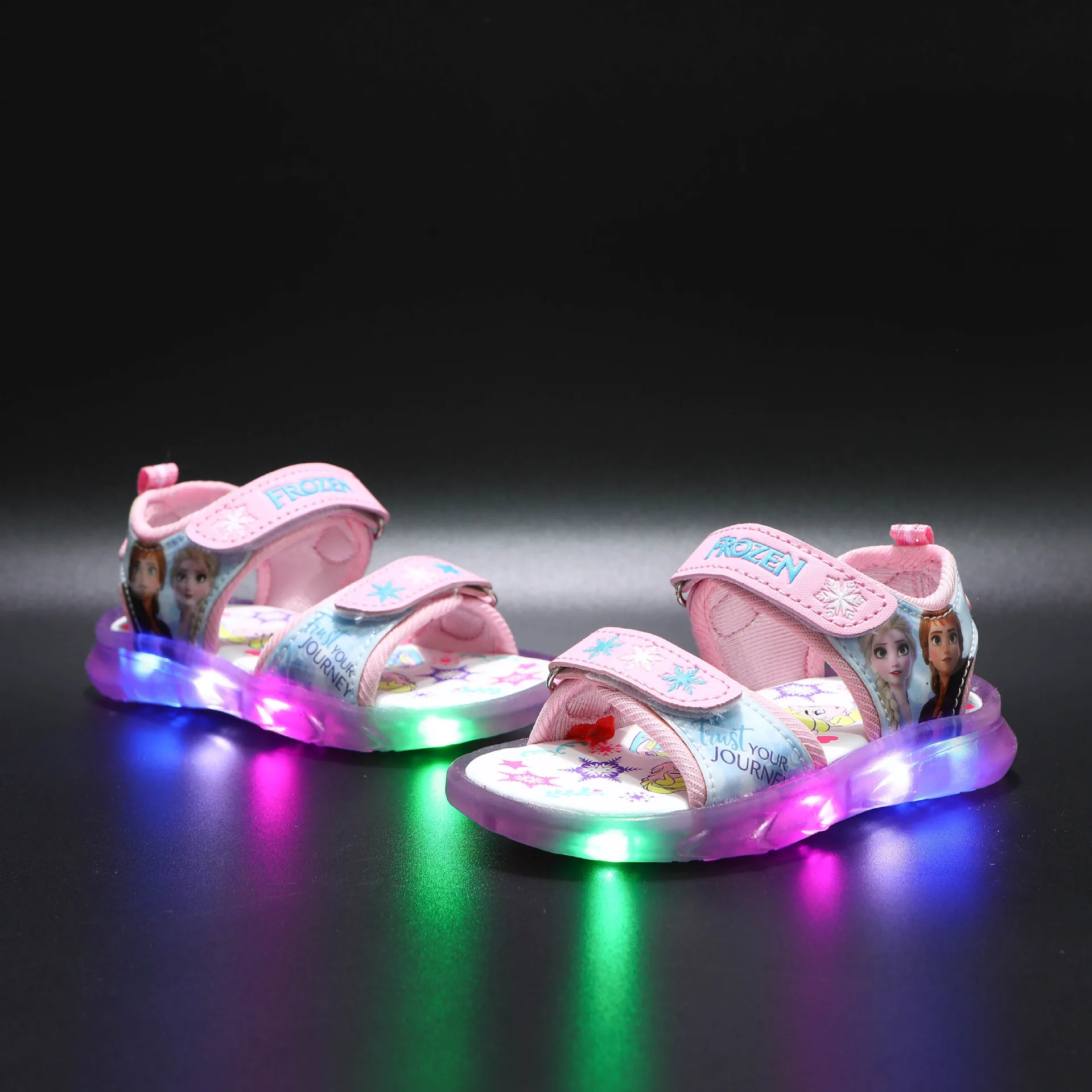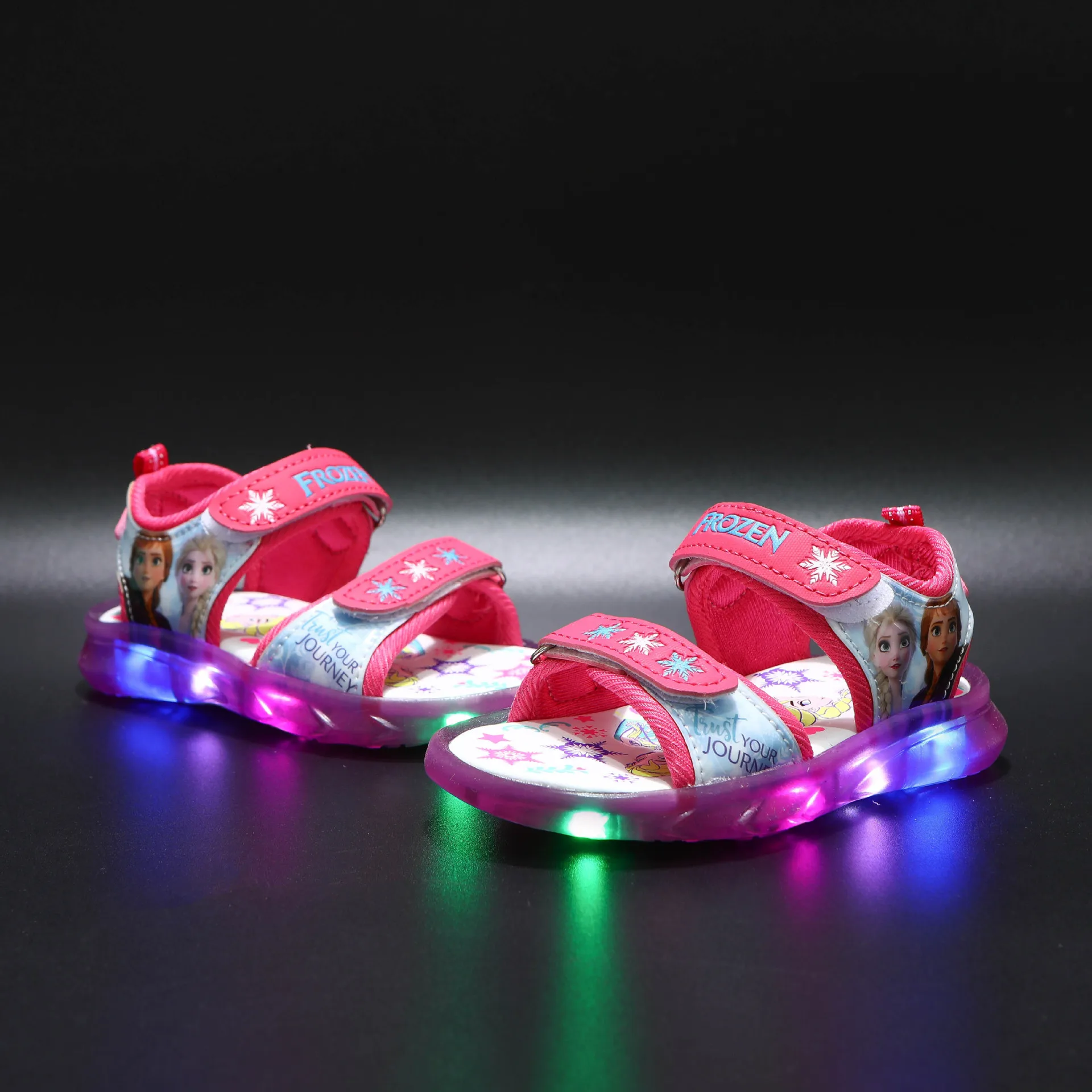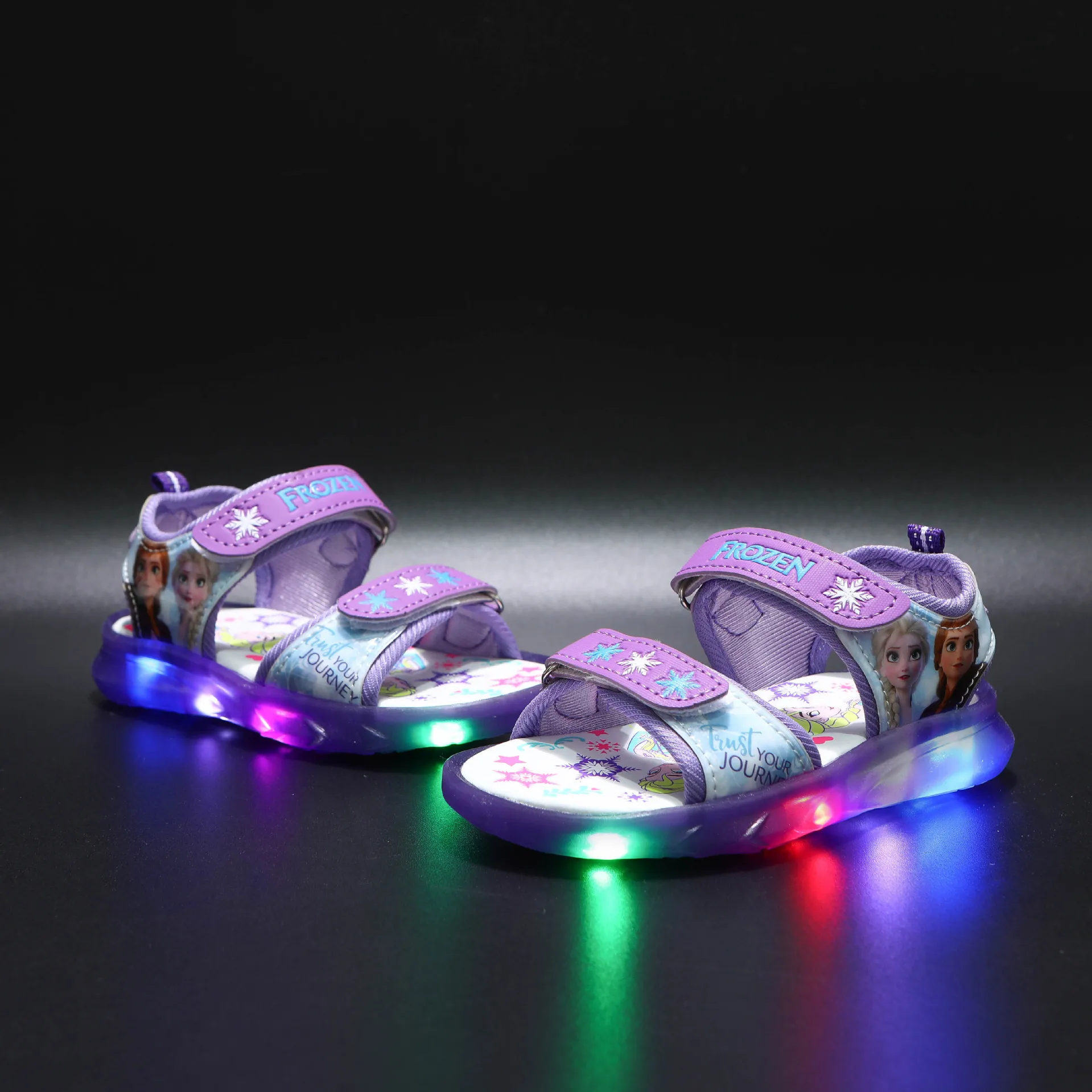 Сандалии для девочек Disney, летние детские босоножки Холодное сердце светильник обувь для девочек, светящиеся туфли Эльзы, сестры