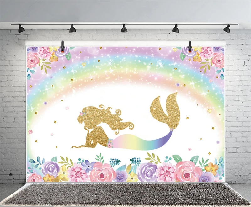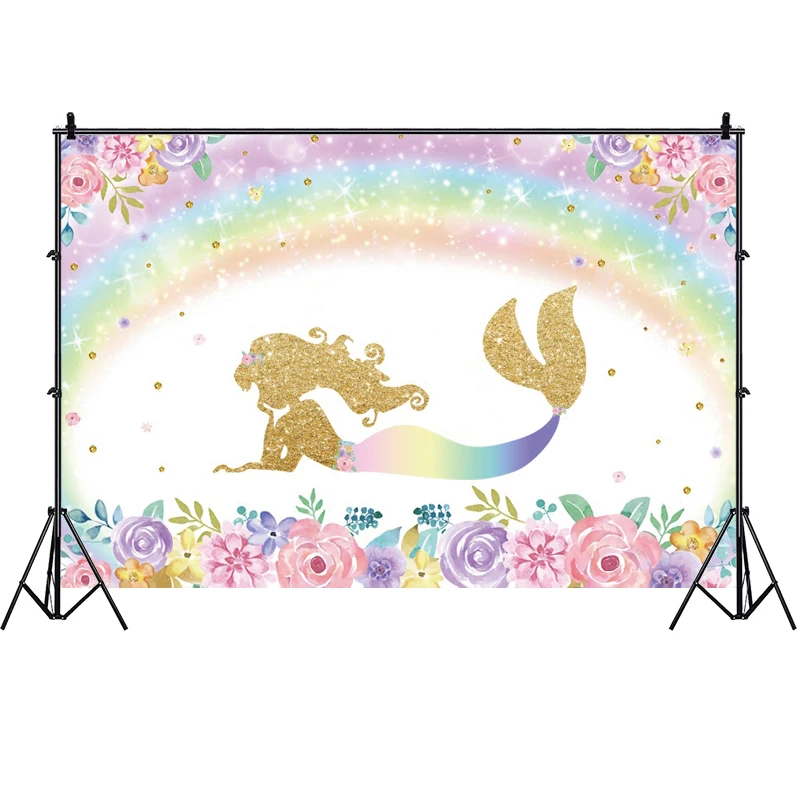 Фон для фотосъемки новорожденных с изображением маленькой Русалочки морской принцессы вечерние НКИ в честь Дня рождения с цветами и радугой для девочек баннер для мальчиков