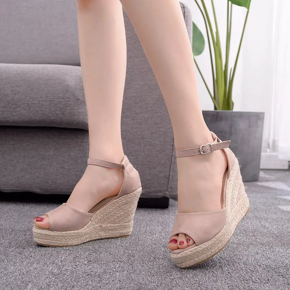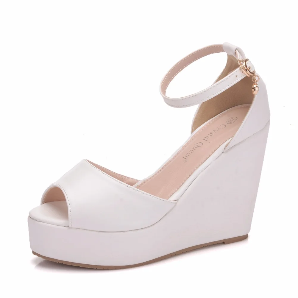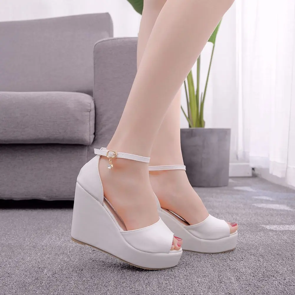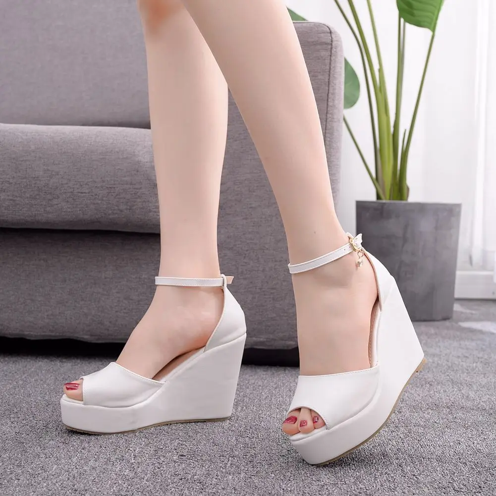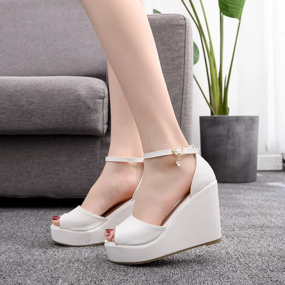 Женские босоножки в стиле ретро, Белые пляжные сандалии на танкетке с открытым носком, на высоком каблуке, с ремешком и пряжкой, большие размеры до 44, обувь в римском стиле, 2022