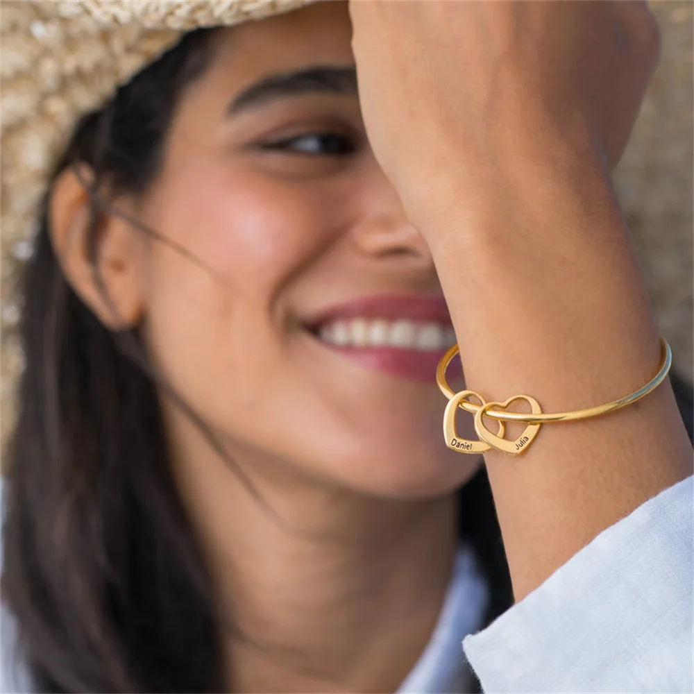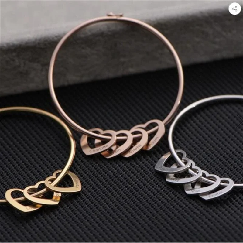Браслет на заказ с 1-8 именами, браслет из нержавеющей стали с подвеской в форме сердца, резной, с именем семьи, женский браслет, ювелирные изделия, лучший подарок