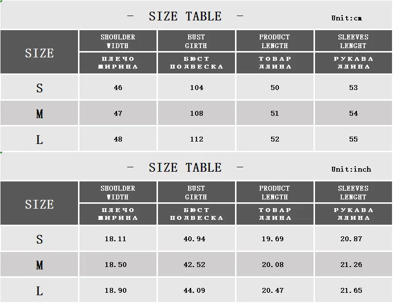Возможна разница в 2-3 см в соответствии с измерениями вручную. Пожалуйста, внимательно проверьте таблицу размеров перед покупкой товара.