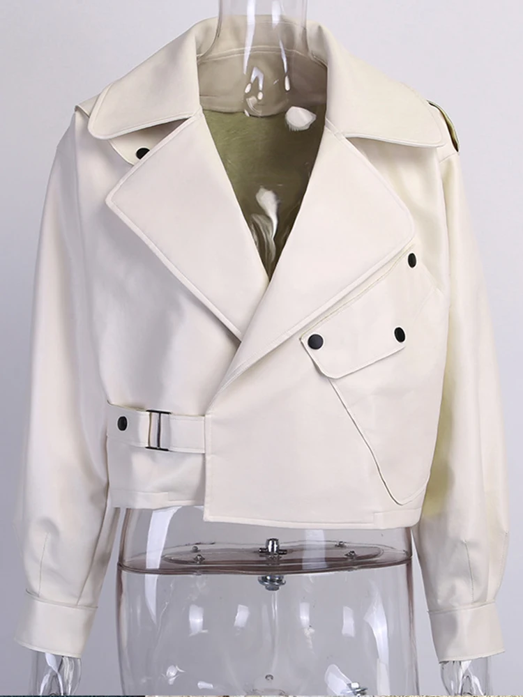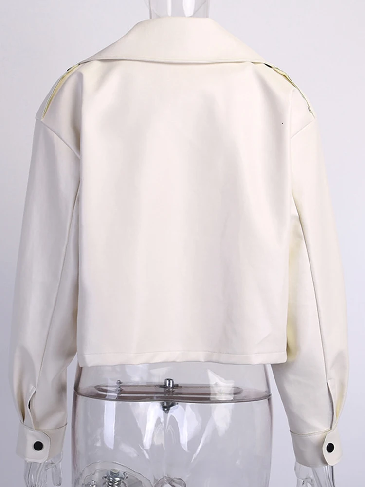 Женская кожаная куртка на одной пуговице, с большими карманами
