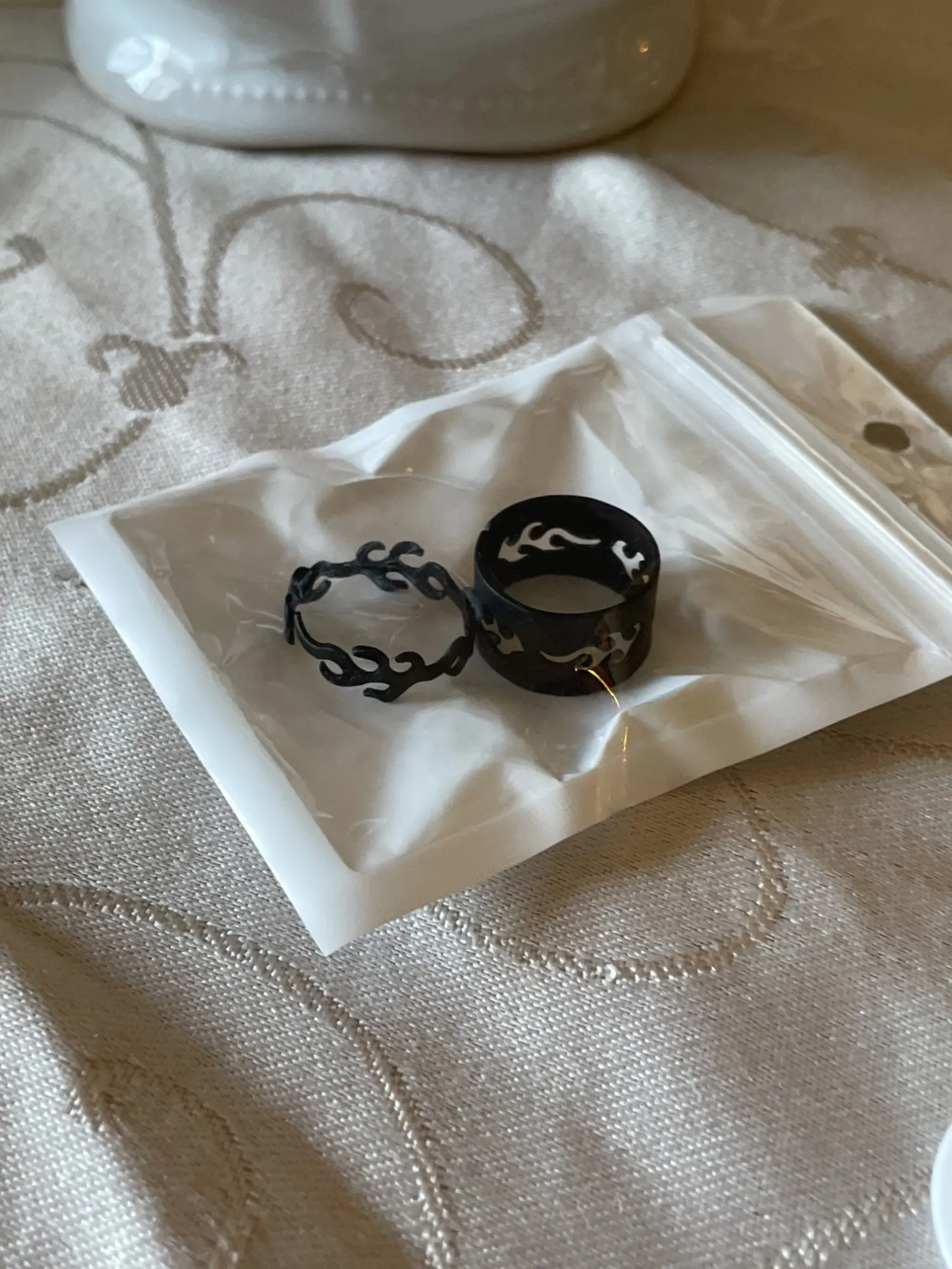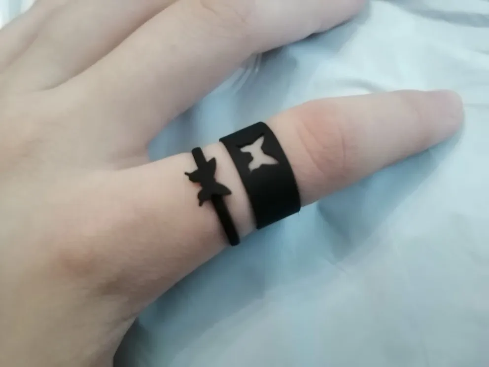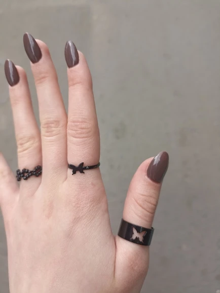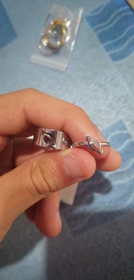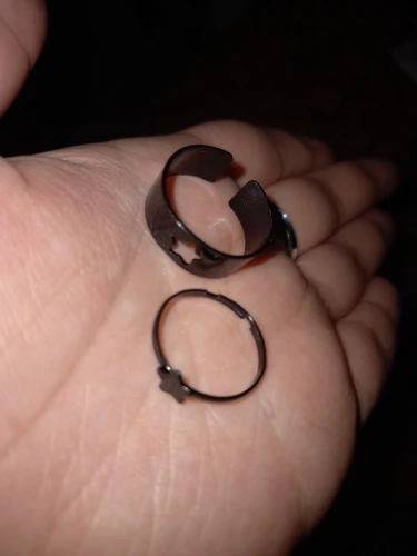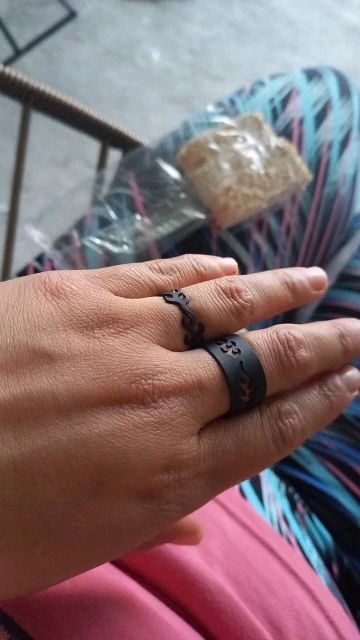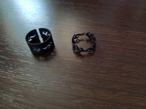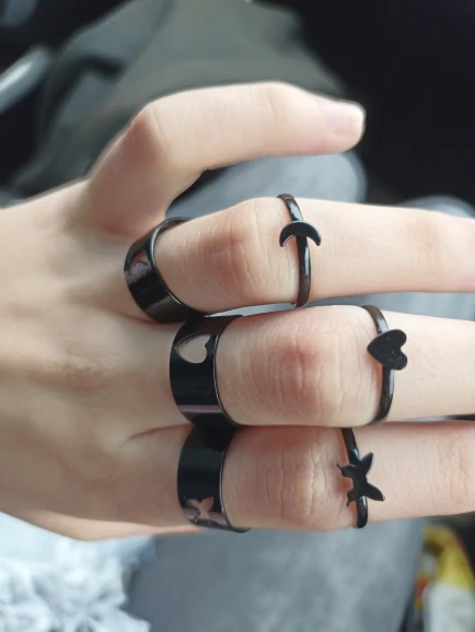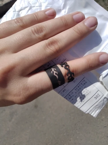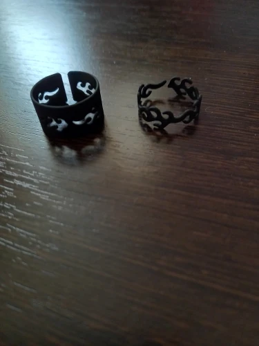 Колечки прикольные брала черные, но к сожалению краска слезла и тоненько колечко с преклеиной фегуркой за все зацепляется. Так что если вы хотите что то удобное берите явно не иэти кольца