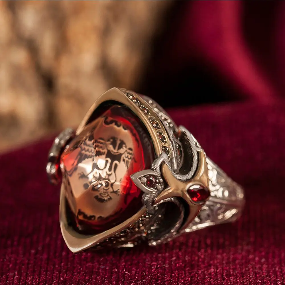 Мужское кольцо из серебра 925 пробы, модель меча орела селюку, Янтарный Драгоценный Камень, мужские подарочные украшения, модный тренд, Сделано в Турции, ручное изготовление