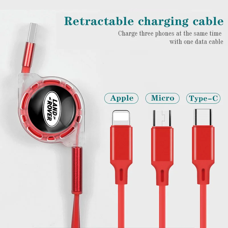 3 в 1 Выдвижной кабель Type-C Micro USB, кабель для зарядки и передачи данных для Land Rover Range Rover Evoque Velar Discovery Defender