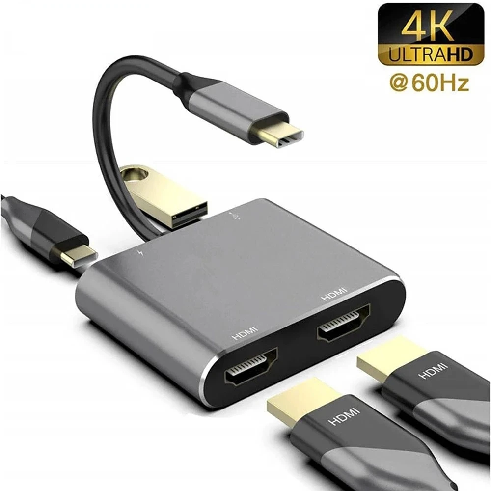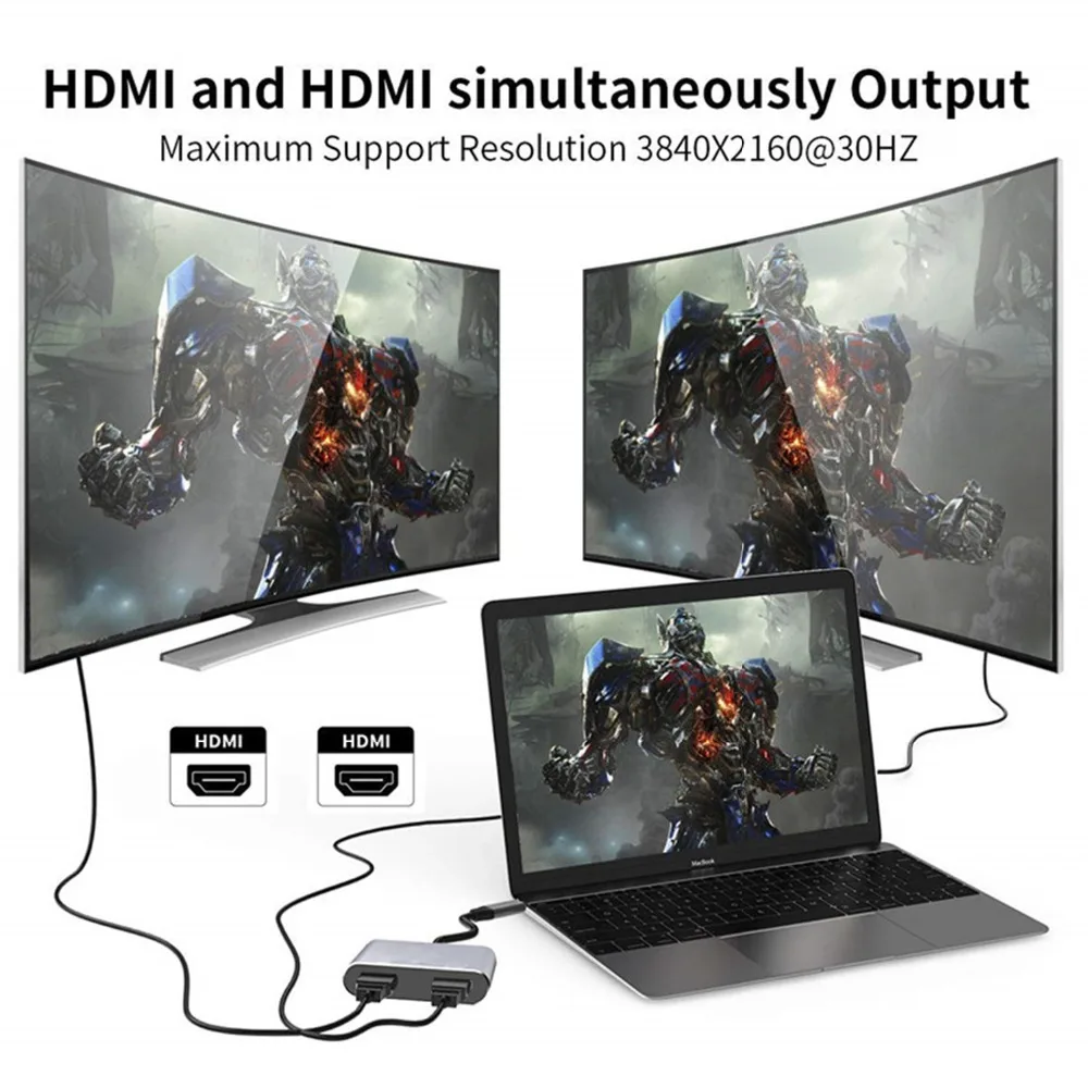 Адаптер Type C HD 4K USB C к двойному HDMI USB 3,0 PD для зарядки, внешний конвертер для MacBook Samsung Dex Galaxy S10S9