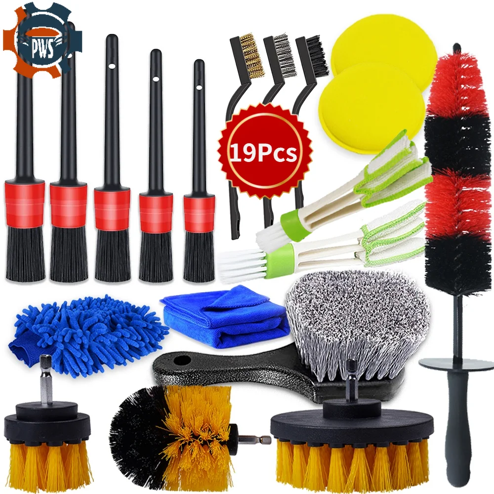 19 шт. щеточка для детейлинга, щетки для дрели, инструмент для чистки ободка автомобильных шин, Набор Щеток Для Чистки деталей автомобиля, салона, наружной уборки, автомойки