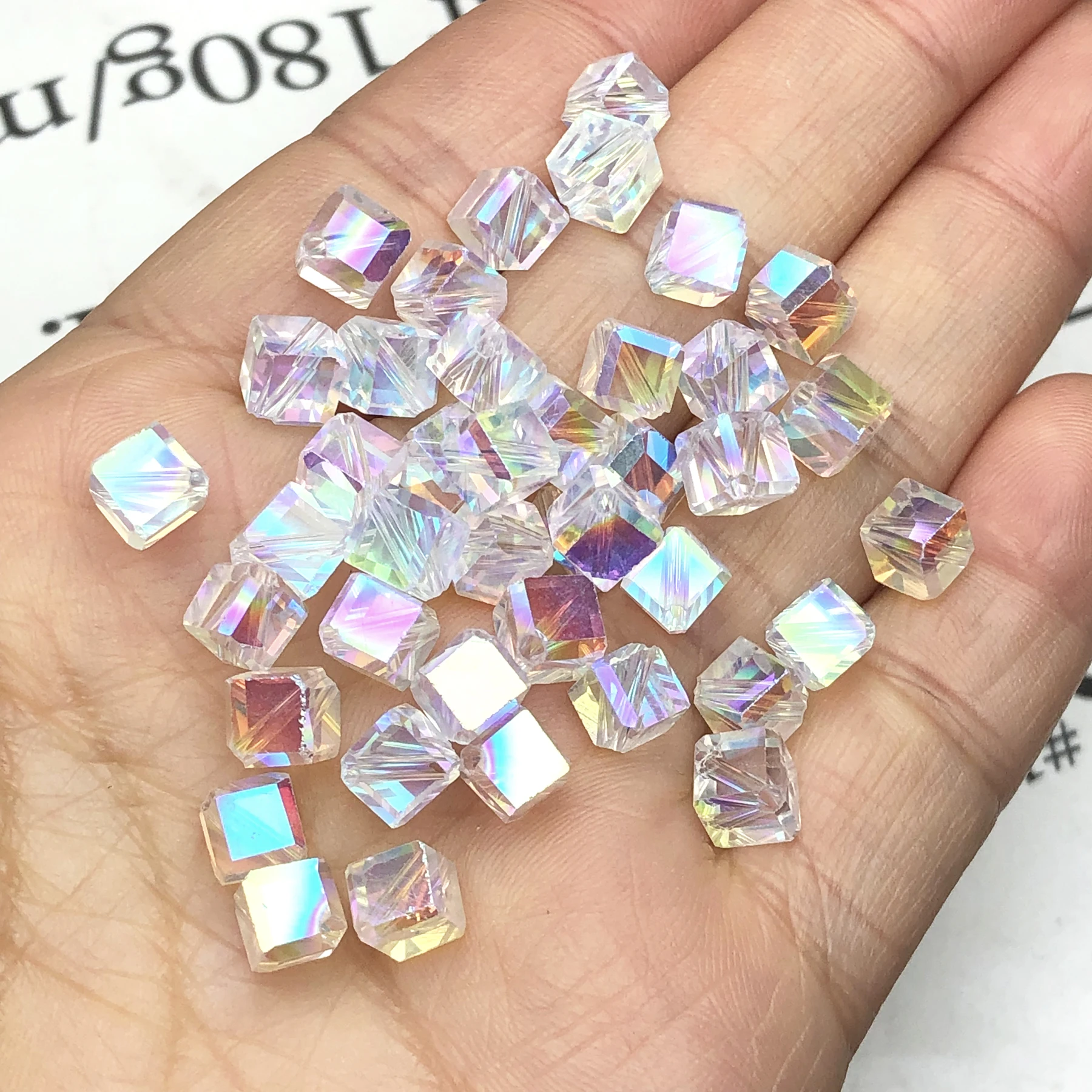 6 мм высококлассный импортный куб AB Цвет австрийский хрусталь косые отверстия Квадратные Свободные поделки бусины аксессуары
