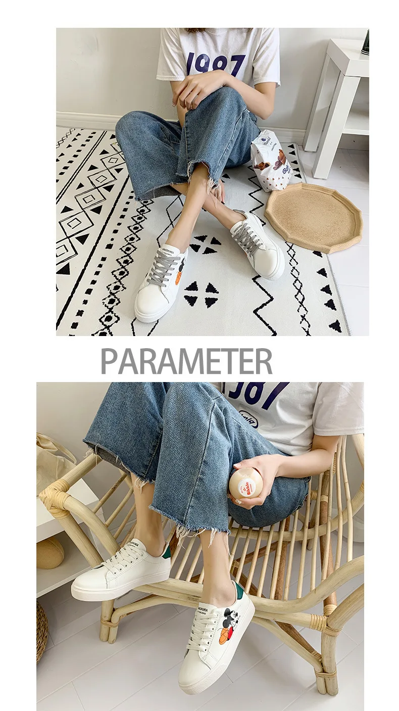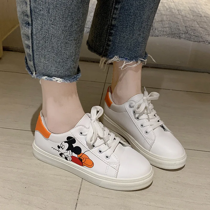 Белые туфли с мультяшными героями Диснея, Микки Маус, женские новые весенние туфли, универсальные корейские повседневные туфли с низким верхом для детей и студентов