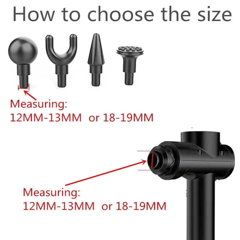 Измерьте диаметр массажной головки, обычно 12 мм-13 мм и 18-19 мм, 2 размера на выбор!