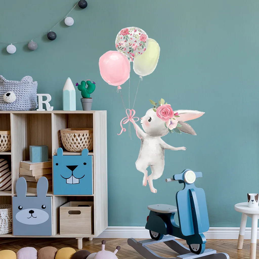 Мультяшные панды, кролик, воздушные шары, настенные наклейки для детей, детских комнат, для девочек, украшение детской комнаты, Симпатичные обои с животными