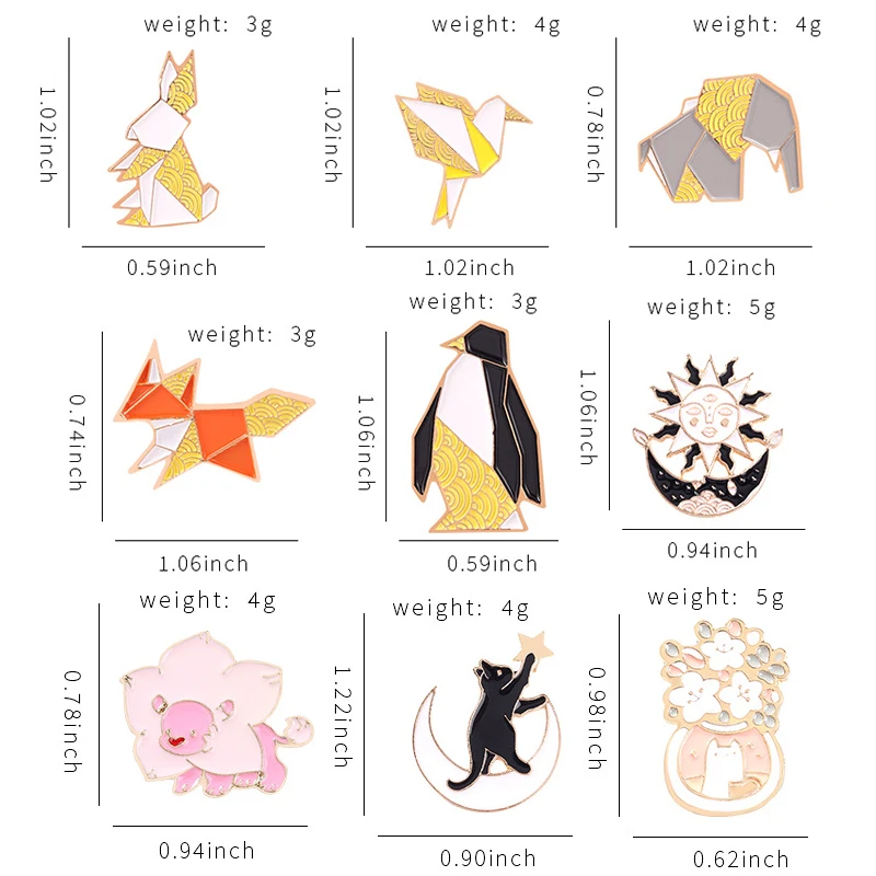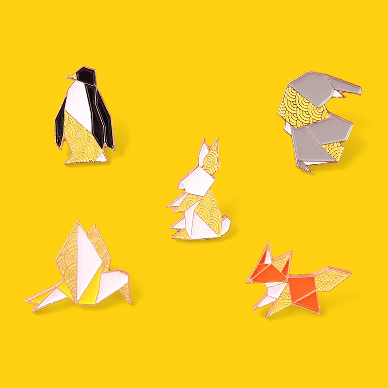 Эмалированные булавки в виде животных оригами, классические броши с...