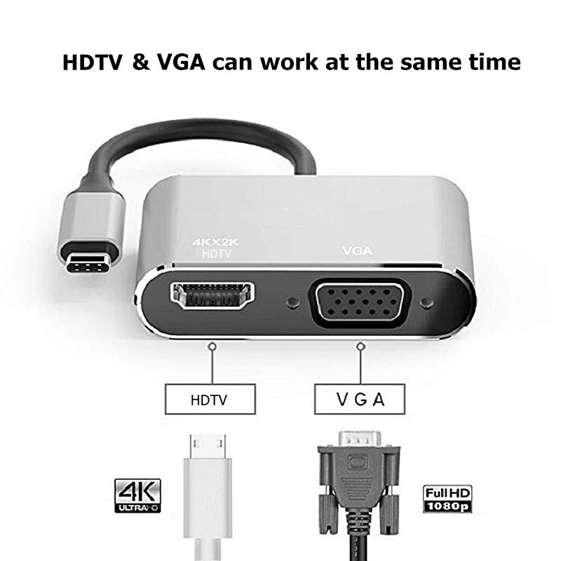 Адаптер Type-C Thunderbolt 3-HDMI-совместимый VGA USB 3,0 C Aux для...