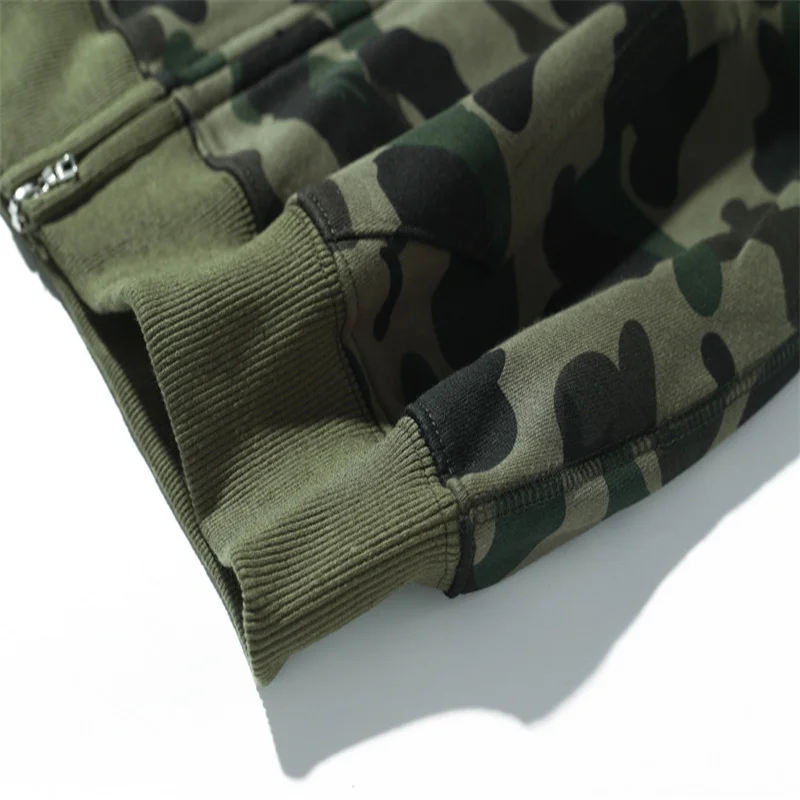 Весенне-осенняя зимняя камуфляжная куртка на молнии с вышивкой Головы Акулы для мужчин и женщин с хлопковой флисовой толстовкой