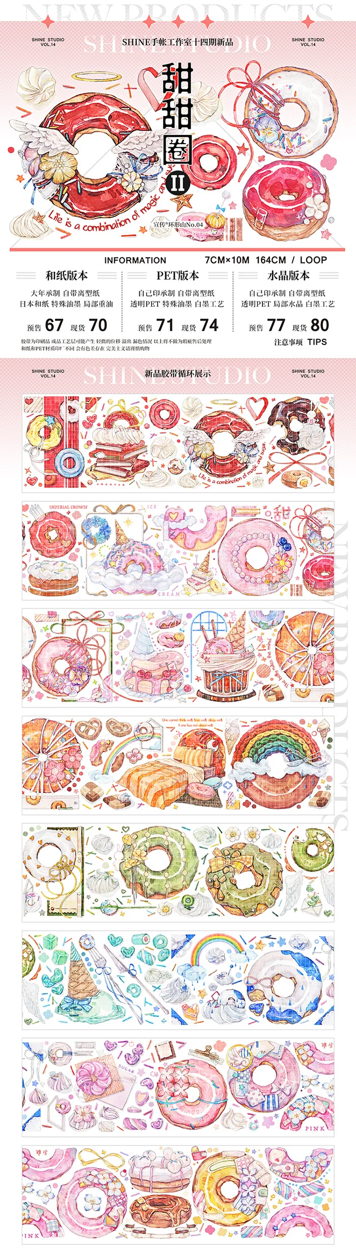 1 петля Блестящий журнал Washi лента пончик Manshu Youxiang оранжевый Ningsenye Home Tour сердце конфеты