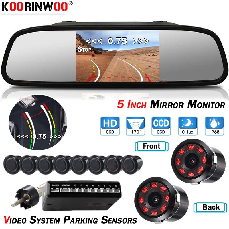 Автомобильная камера заднего вида Koorinwoo, камера с динамической траекторией, передняя камера, Парктроник, датчик отдачи, парковочное оборудование, монитор