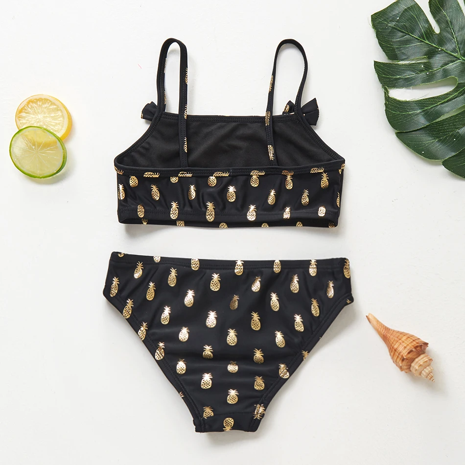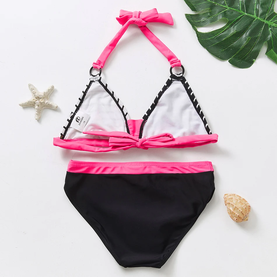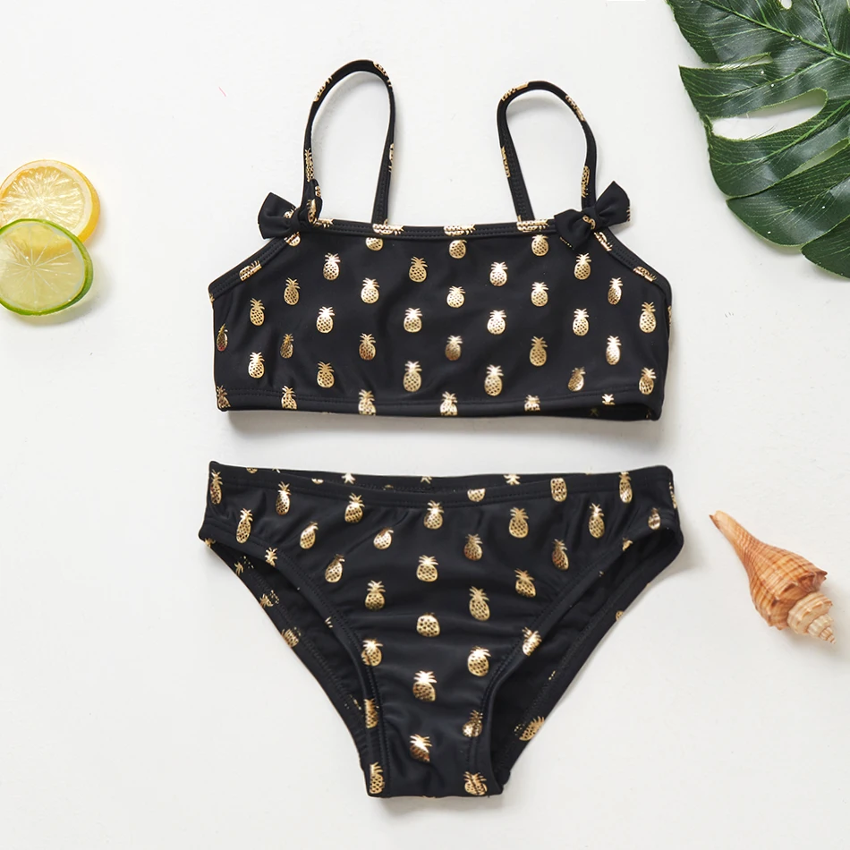 Детский раздельный купальник для девочек, черный купальник с косыми...