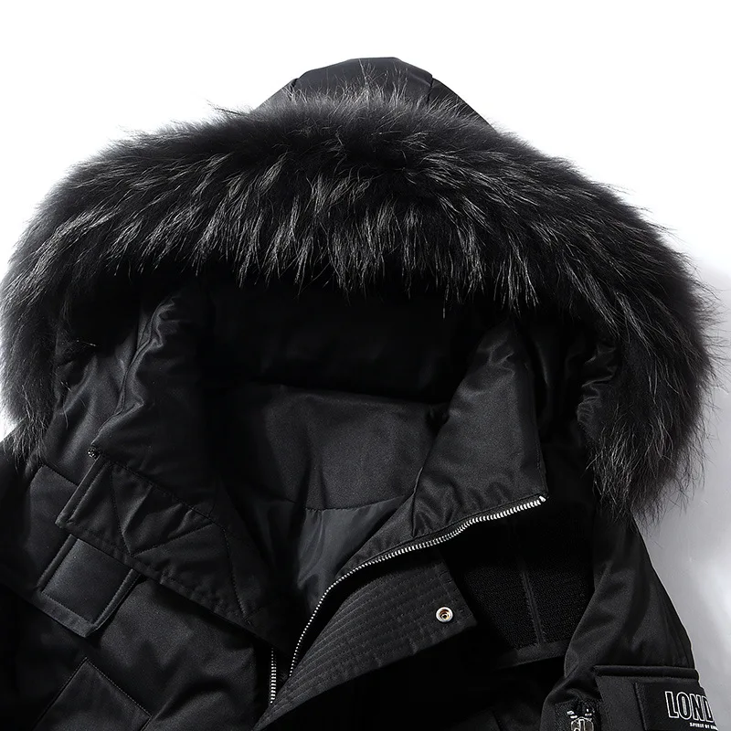 Длинный пуховик с меховым воротником, Мужская зимняя теплая куртка ...