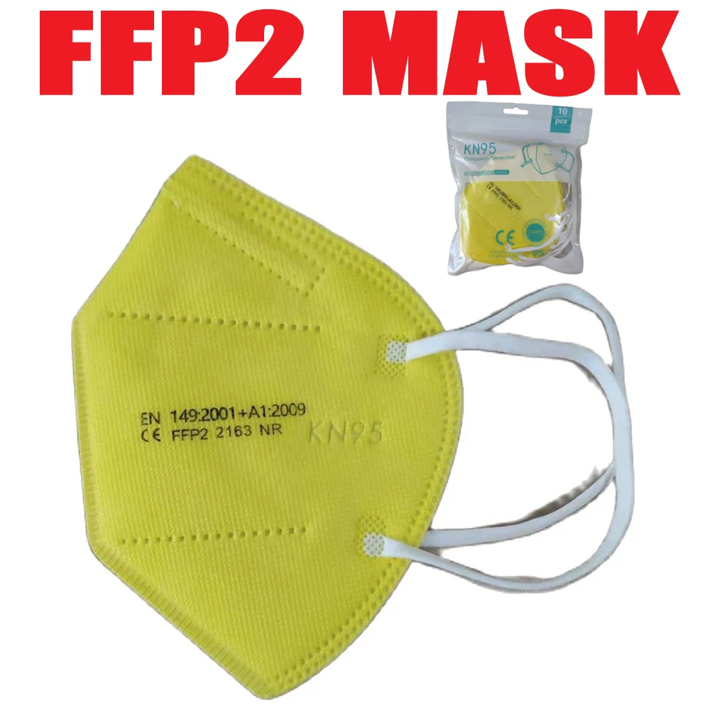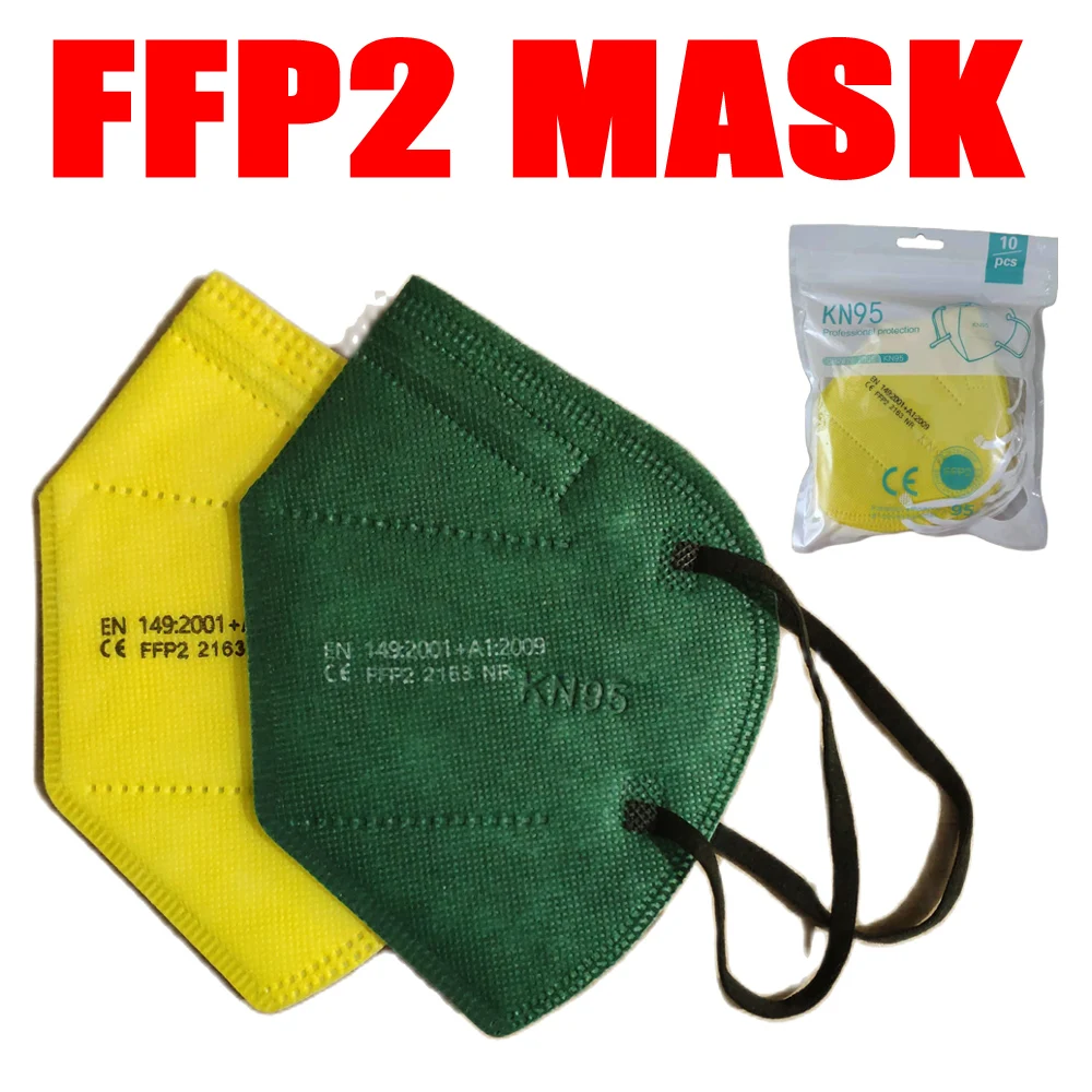 Темно-зеленые защитные маски FFP2, одобренные KN95, маски для взрослых, 5-слойная защитная маска для лица fpp2, желтая маска CE, респиратор