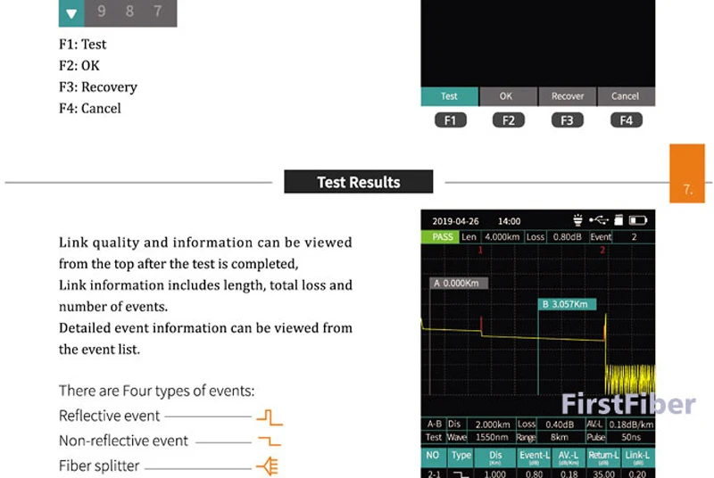 1) OTDR2) карта событий3) Оптический светильник4) измеритель оптической мощности5) Визуальный дефектоскоп6) RJ45 Ethernet кабель7) Расстояние кабеля Ethernet8) Ethernet кабель трекер9) светодиодный светильник