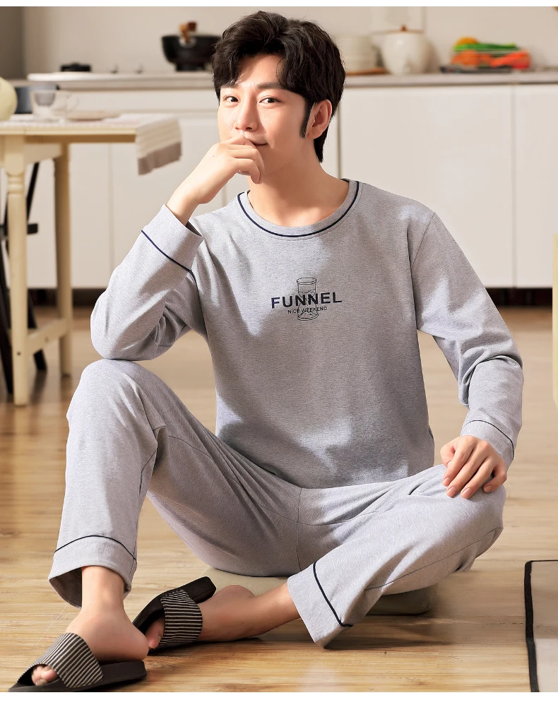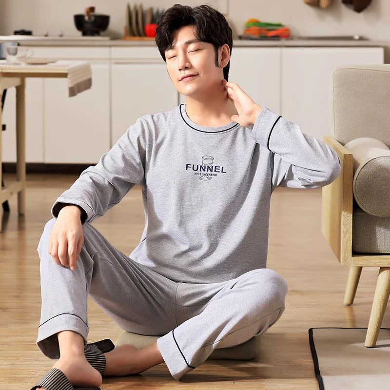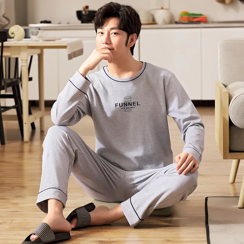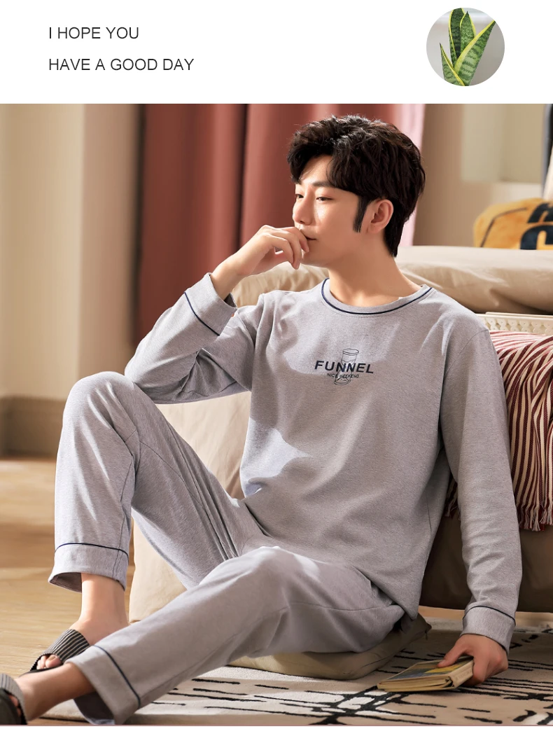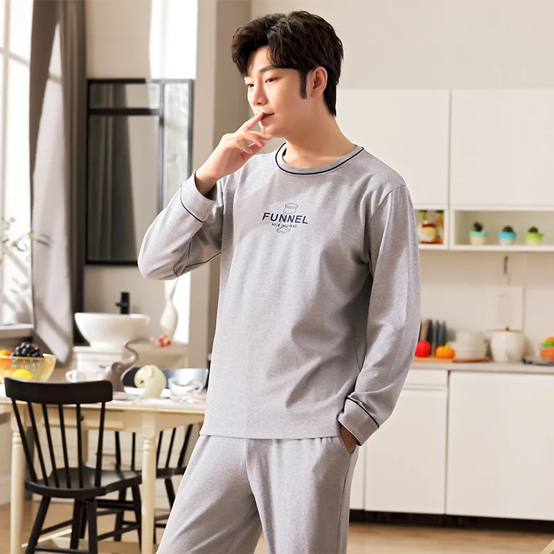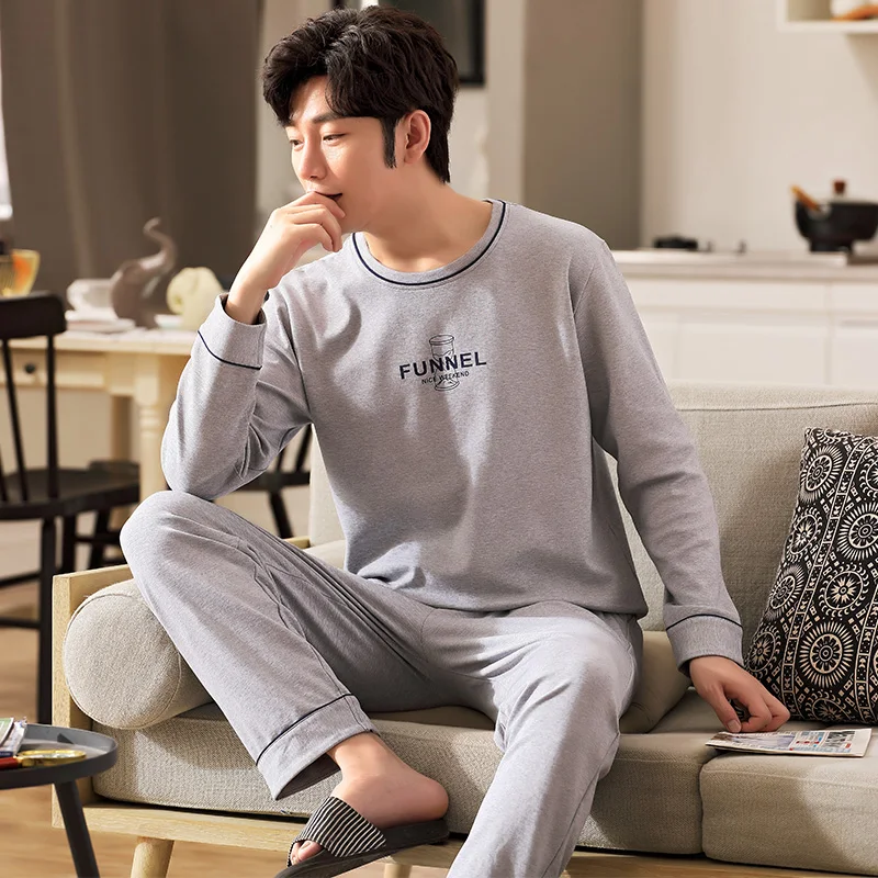 Светло-серый женский спортивный костюм, мужской свободный пижамный комплект, Повседневная Свободная одежда для сна из хлопка, Свободная Домашняя одежда, ночные рубашки и нижние брюки