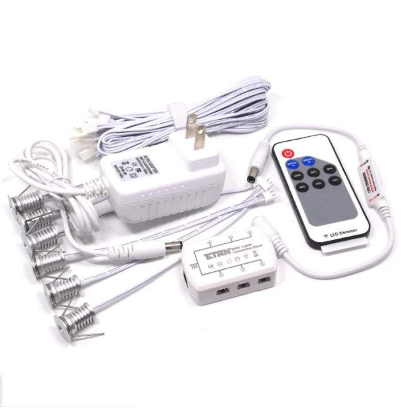 Комплект из 6 ламп с регулируемой яркостью = 6 ламп + 1 адаптер + 1 коробка для подключения с шестью отверстиями + 6 проводов на 1 метр + 1 контроллерНабор ламп без затемнения 6 = 6 * лампа + 1 * адаптер + 1 * шесть отверстий Соединительная коробка + 6*1 метровый провод