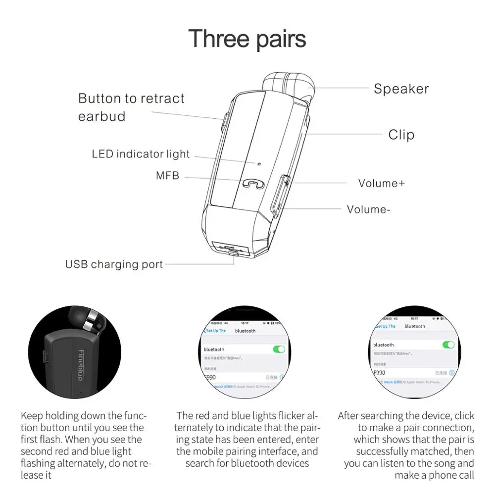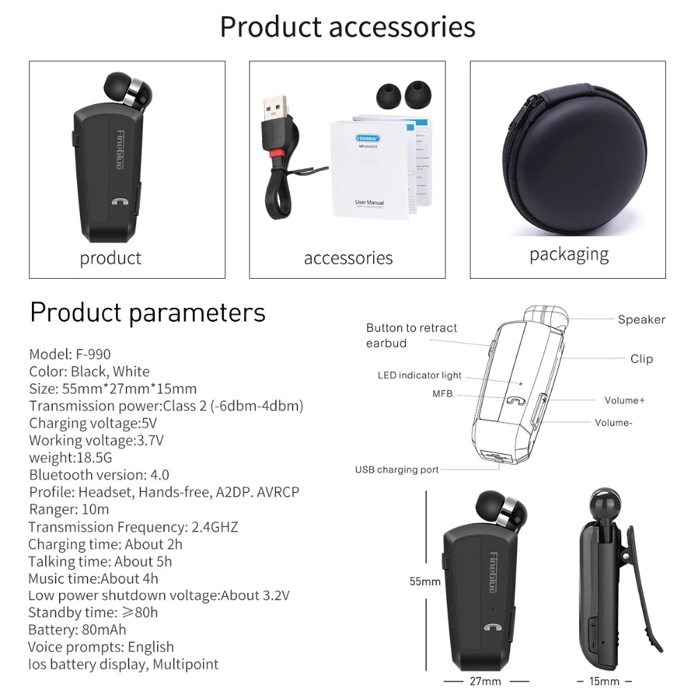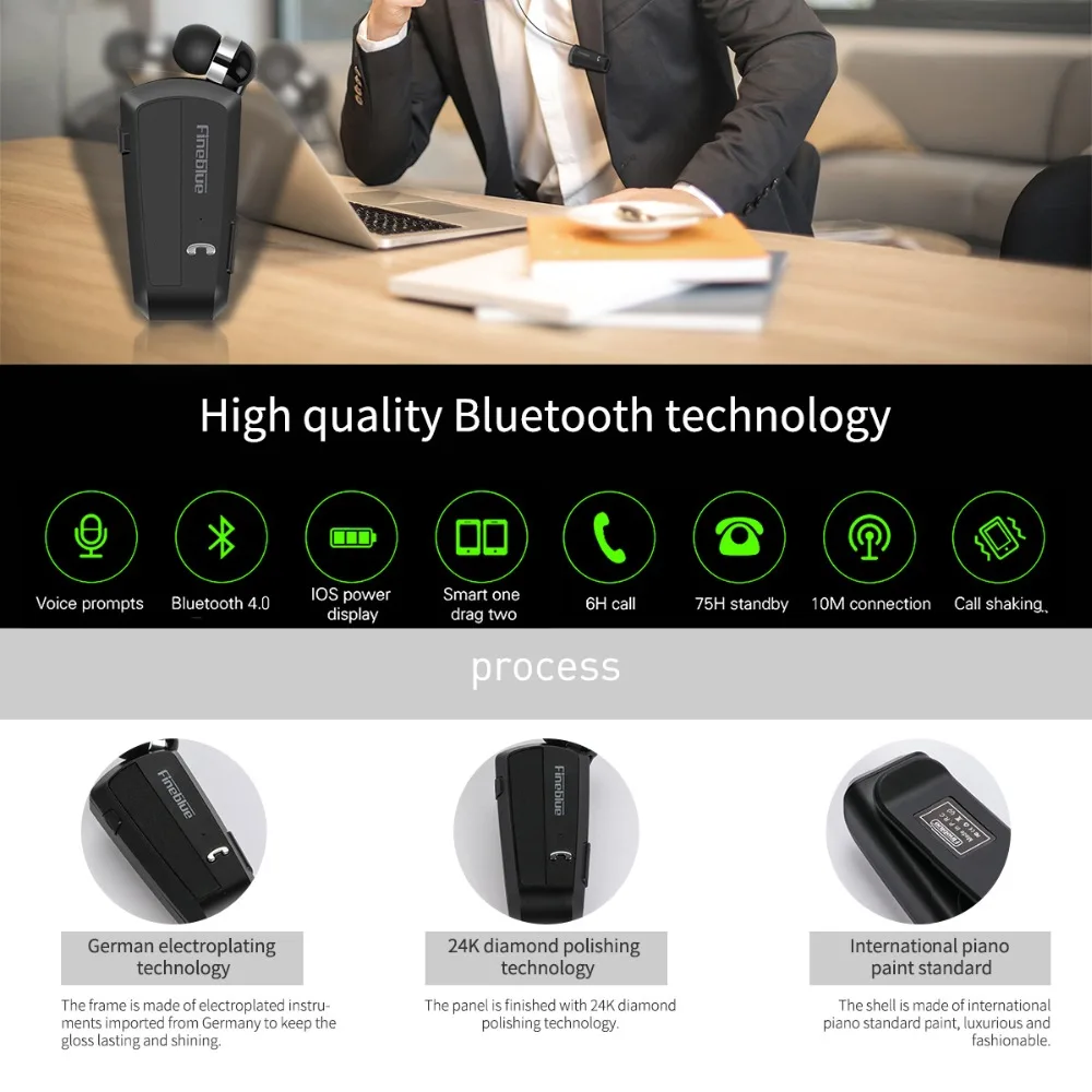 Беспроводная деловая Bluetooth-гарнитура Fineblue F990 с телескопическим зажимом