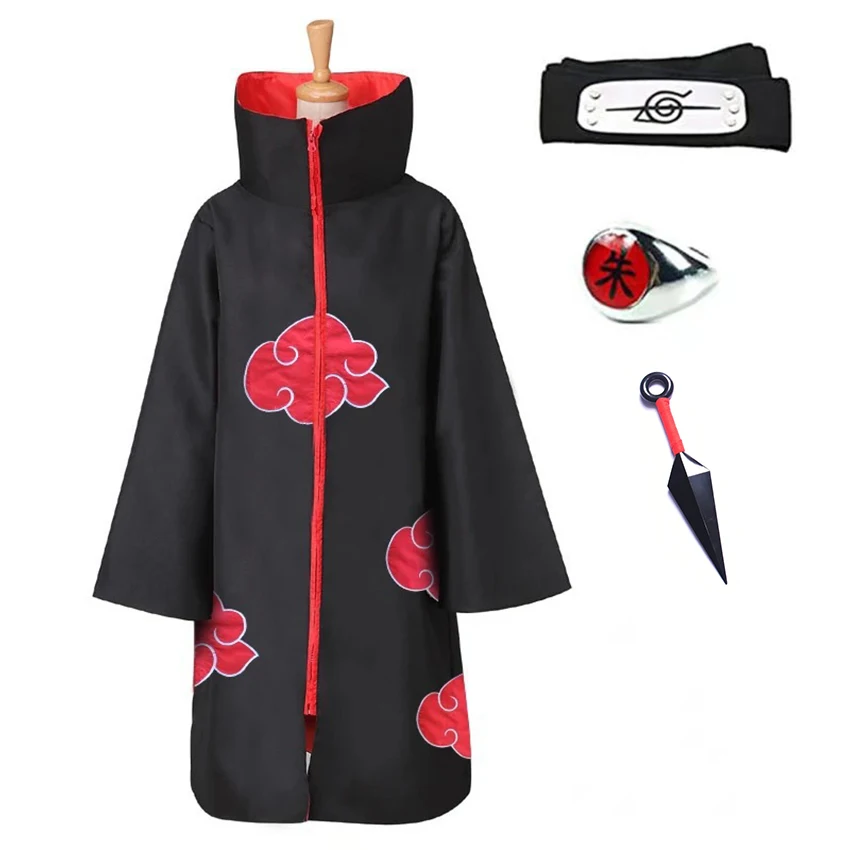 Akatsuki костюмы Itachi ниндзя халат Хэллоуин костюмы для детей женщин Xiao Косплей Аниме аксессуары кольцо облако пальто накидка хаори