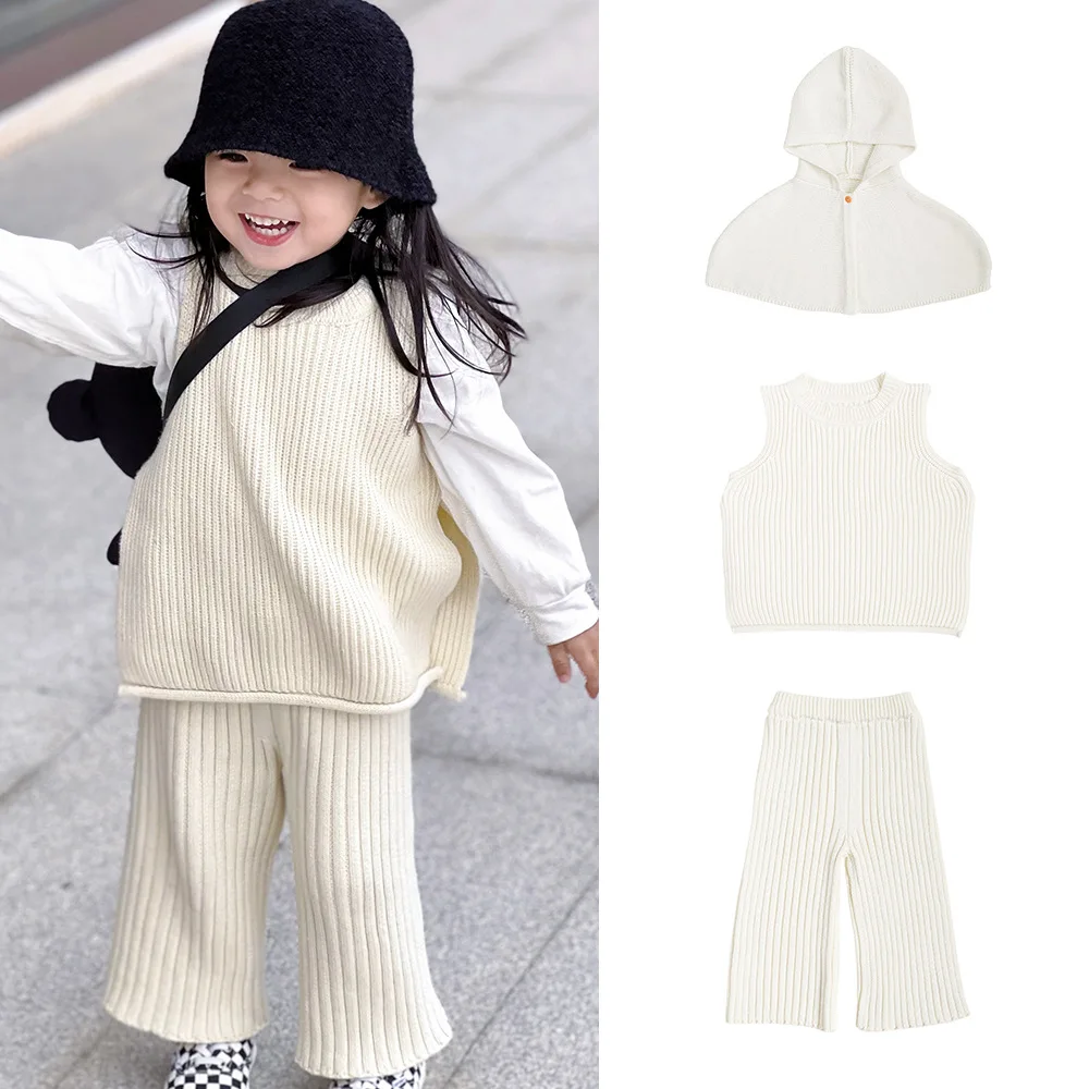 Новинка 2022, детский вязаный жилет, жилет, шерстяные брюки с широкими штанинами, теплый халат, костюмы для мальчиков и девочек
