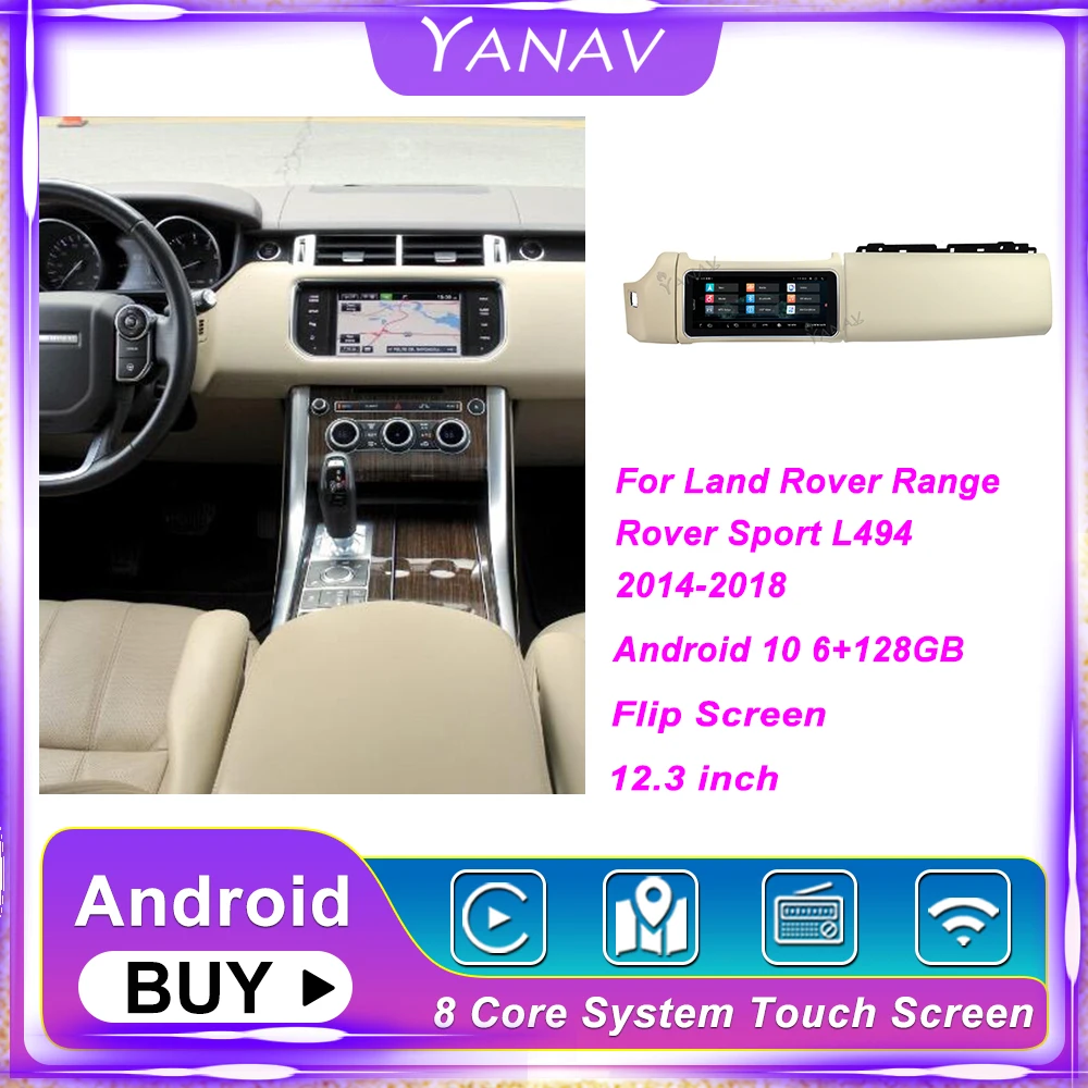 Автомобильный радиоприемник с вращающимся экраном 12,3 128G для Range Rover Sport L494 2014-2018, откидной экран с наклонным экраном, мультимедиа, GPS-навигация Carplay