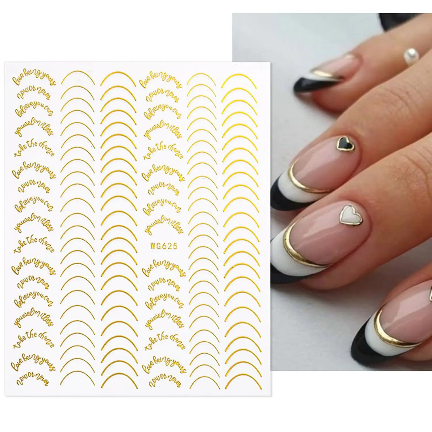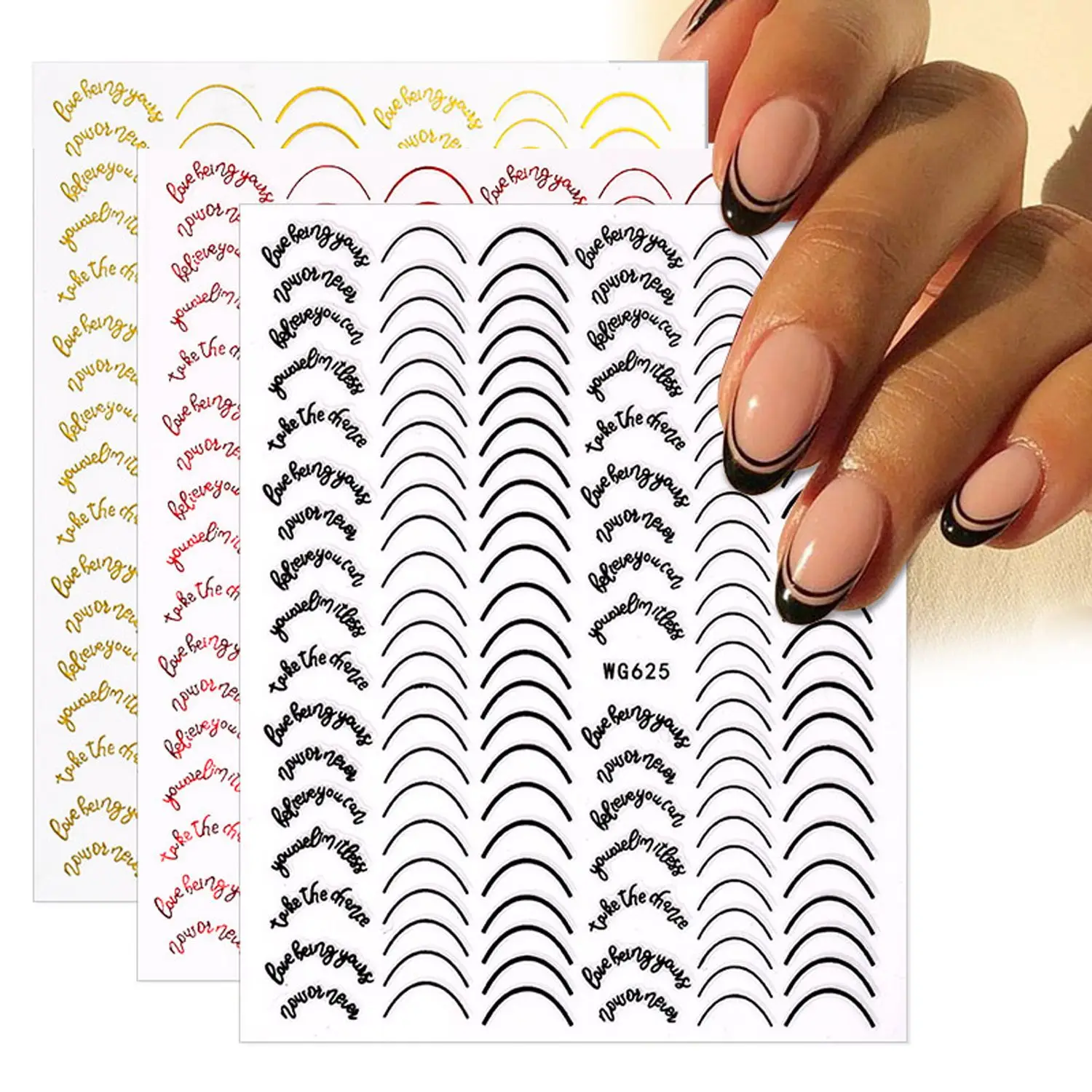 Новые модные 3D Геометрические линии, черные, белые французские наклейки для ногтей, 3D розовое золото, сделай сам, художественные украшения для ногтей, модные переводки, полосатая лента