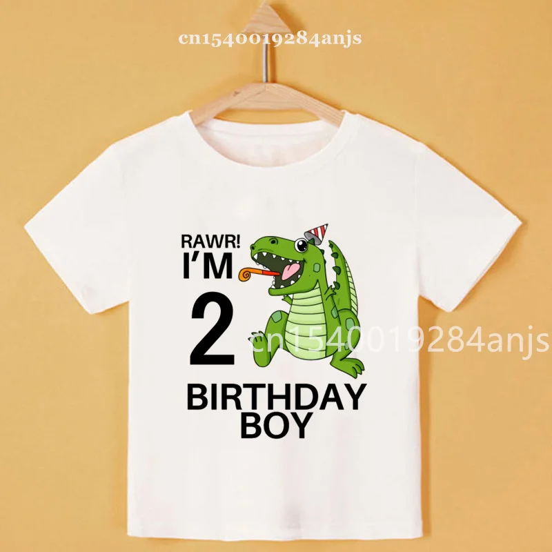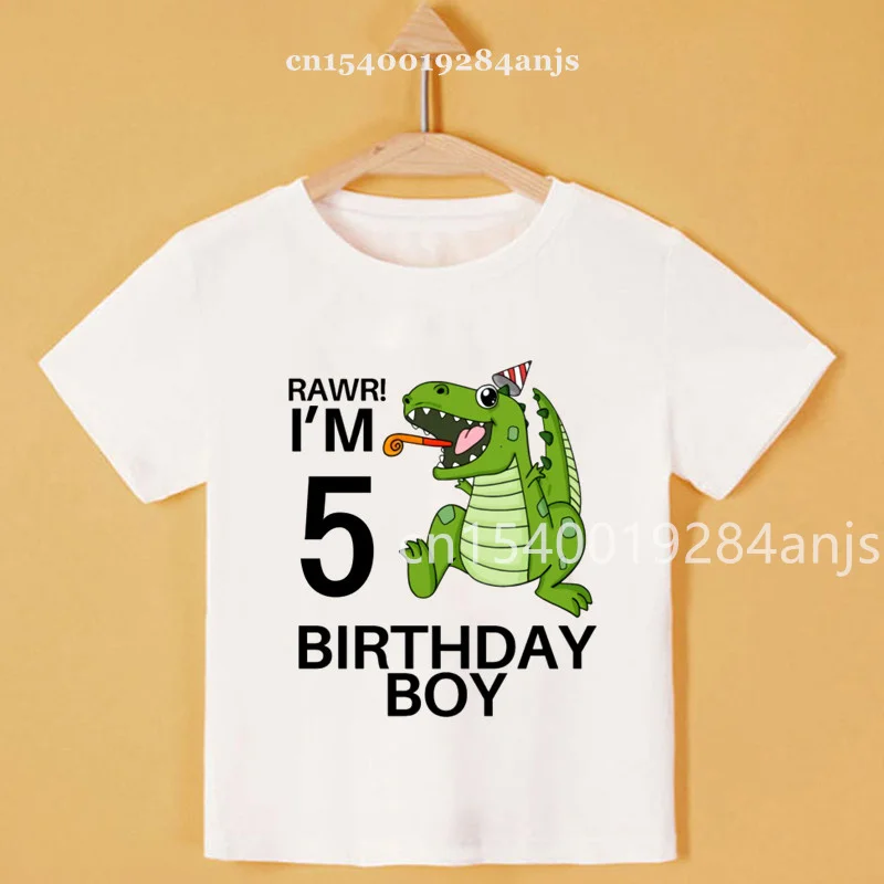Детская футболка с изображением милого динозавра, номера на день рождения, мультяшная футболка для мальчиков и девочек с изображением цифр динозавров, возможность нанесения индивидуального номера