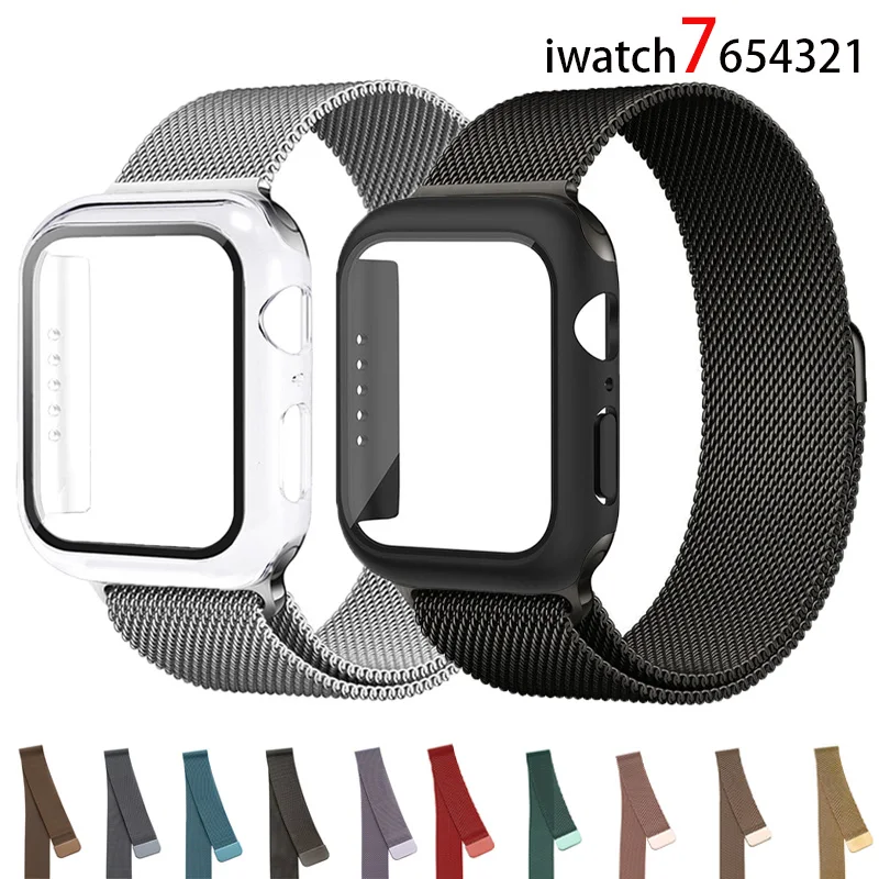 Магнитная Петля и стеклянный чехол для Apple Watch band 44 мм 40 мм 45 мм 41 мм 42 мм 38 мм, металлический ремешок, браслет correa Apple watch Series 4 5 6 7