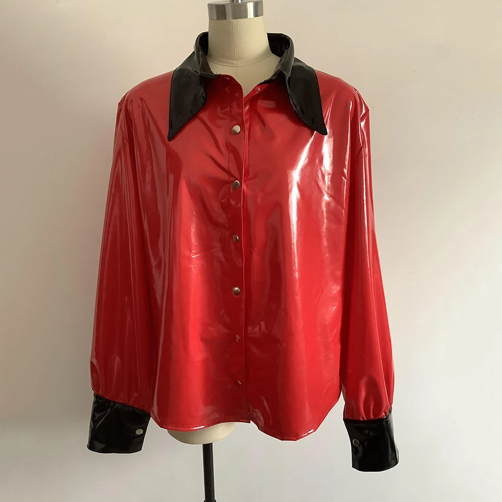 Женская рубашка с длинным рукавом, из ПВХ кожи