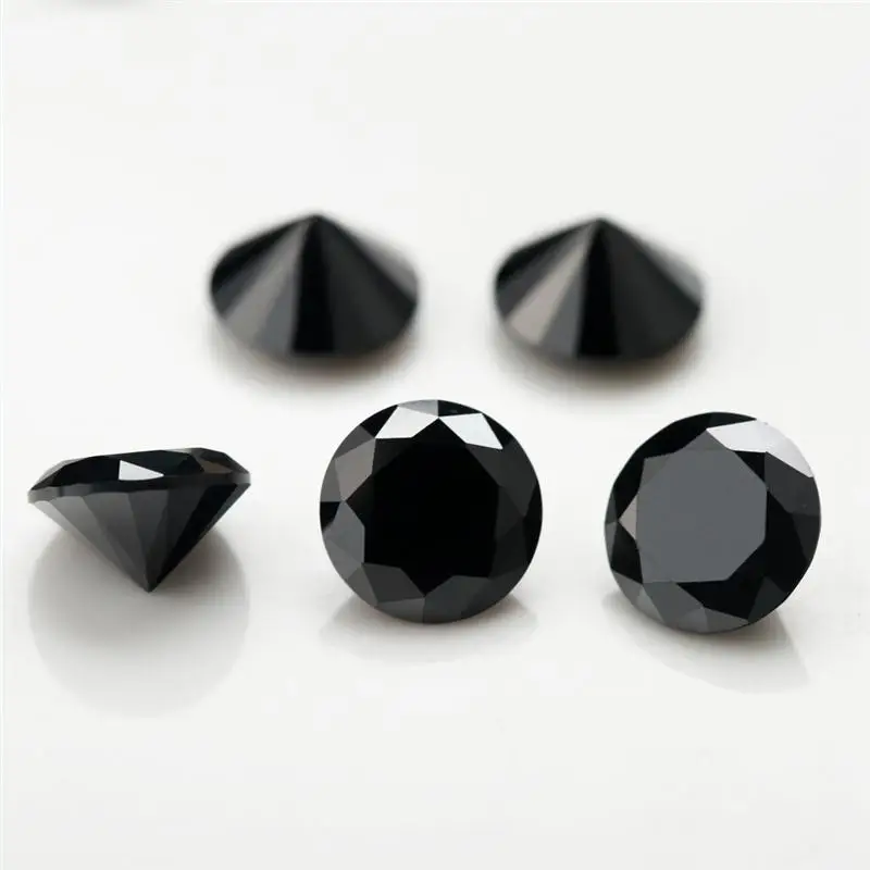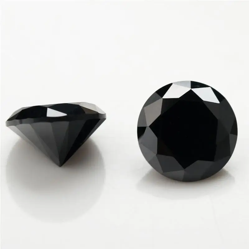 50 шт., круглые камни круглой формы черного цвета с фианитом AAAAA,...