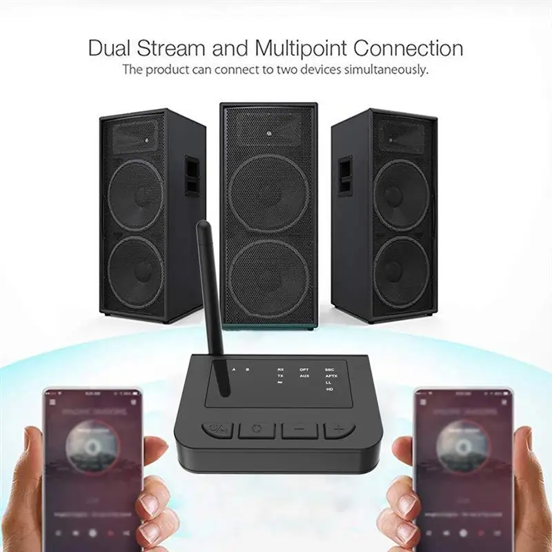 80 м Дальний диапазон Bluetooth 5,0 передатчик приемник низкая задержка aptX HD Spdif RCA Jack AUX 3,5 мм беспроводной аудио адаптер ТВ PC автомобиль