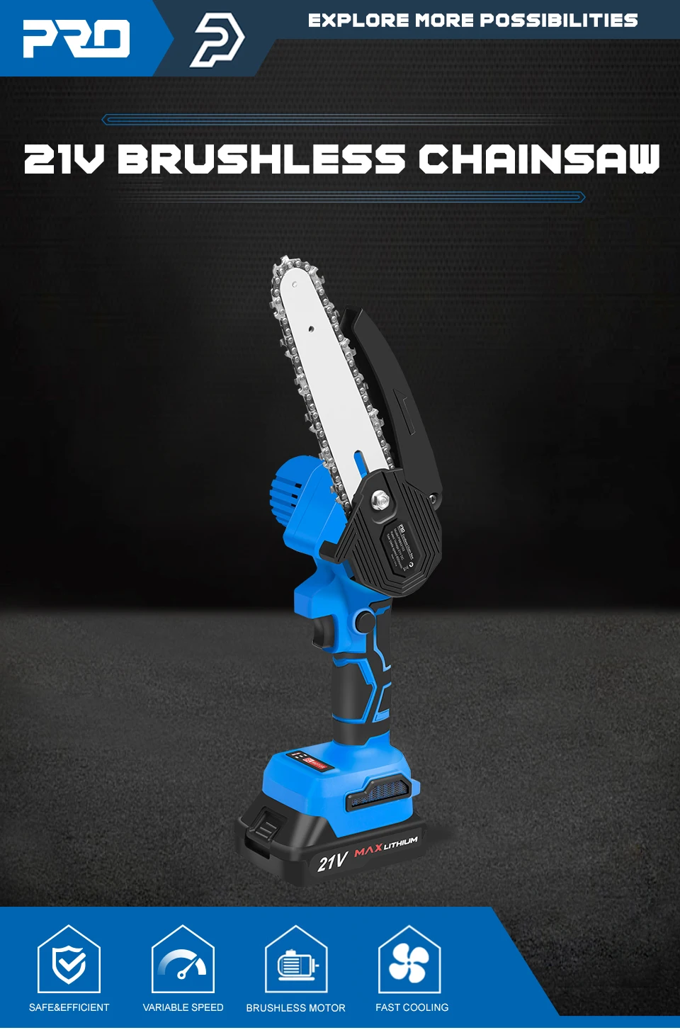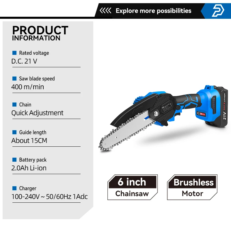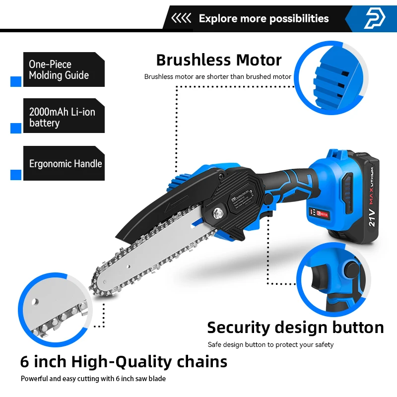 PRO PSBS2102 бензопила Цепная пила PROSTORMER, пила аккумуляторная бесщеточная электрическая портативная мини-пила для обрезки древесины, 6 дюймов, электроинструмент 21 в