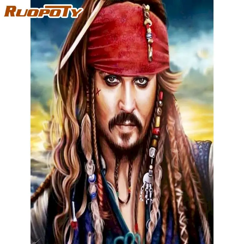 Алмазная 5D картина RUOPOTY с портретом пирата, квадратнаякруглая вышивка, Набор для вышивки крестиком, картина, мозаика сделай сам, украшение для дома, подарок