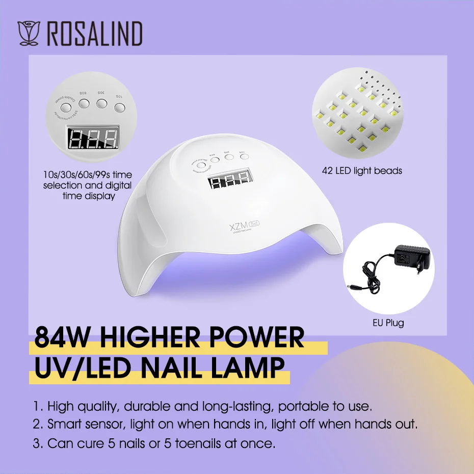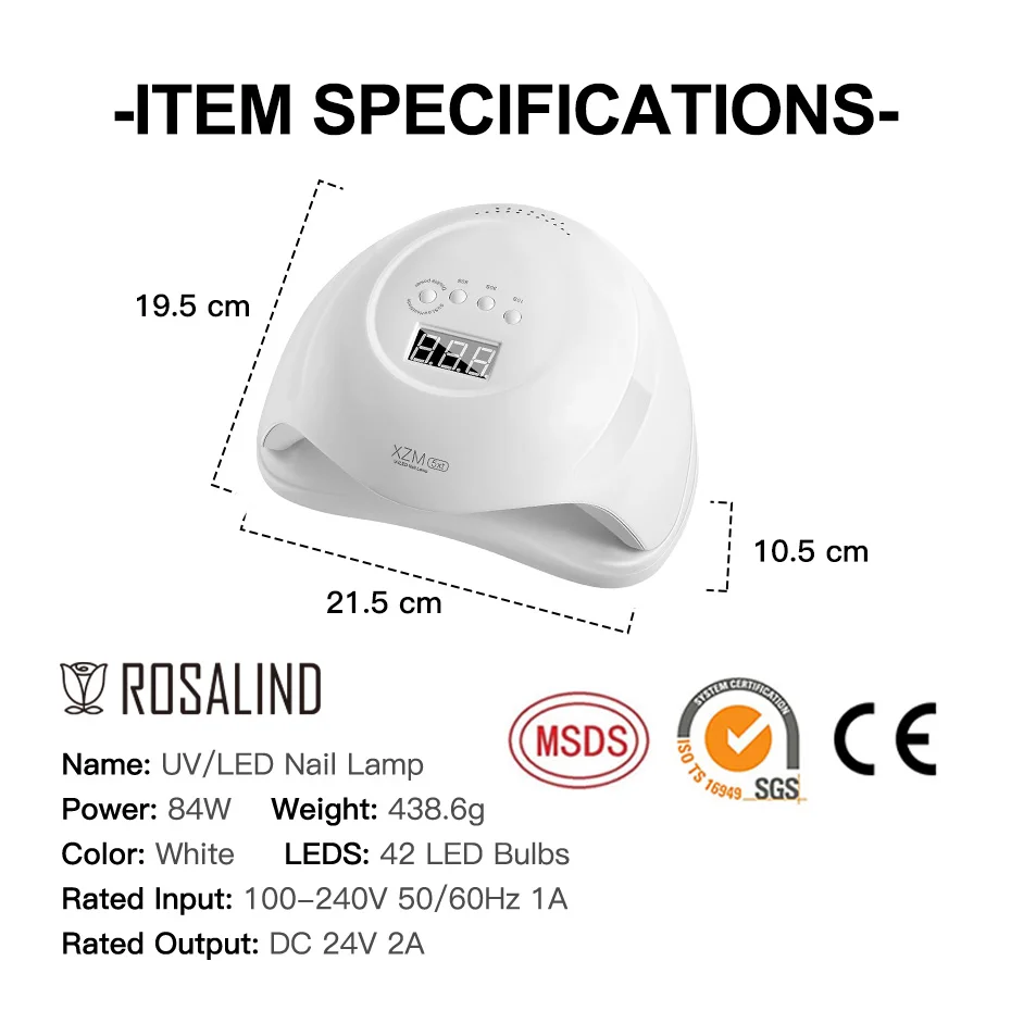 ROSALIND 84 Вт Светодиодная УФ-лампа для ногтей быстроотверждаемая лампа для маникюра, Гель-лак для ногтей, Сушилка для ногтей, Полупостоянный Гель-лак