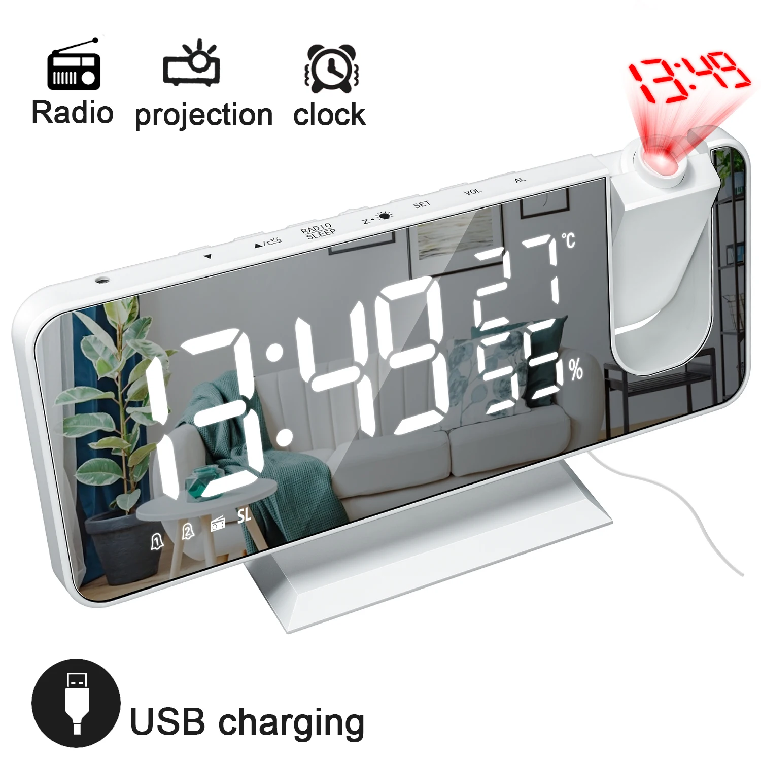 FM-радио, светодиодный цифровой смарт-будильник, часы, настольные электронные часы, USB будильник, часы с проекцией 180 , Повтор времени