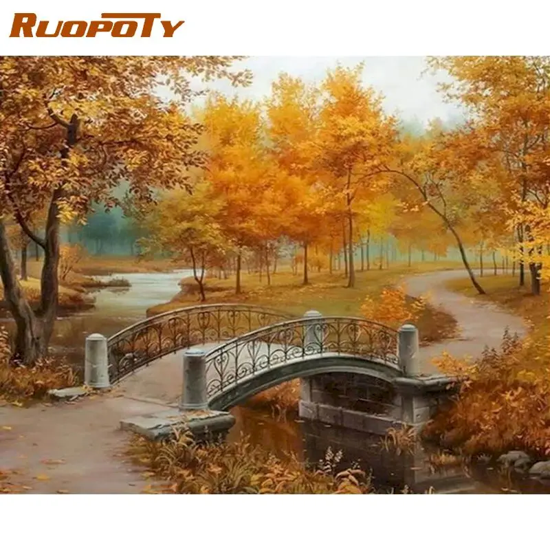 Набор для алмазной вышивки RUOPOTY 5D сделай сам, картина с осенним пейзажем, квадратнаякруглая вышивка крестиком, мозаика сделай сам, украшение для дома