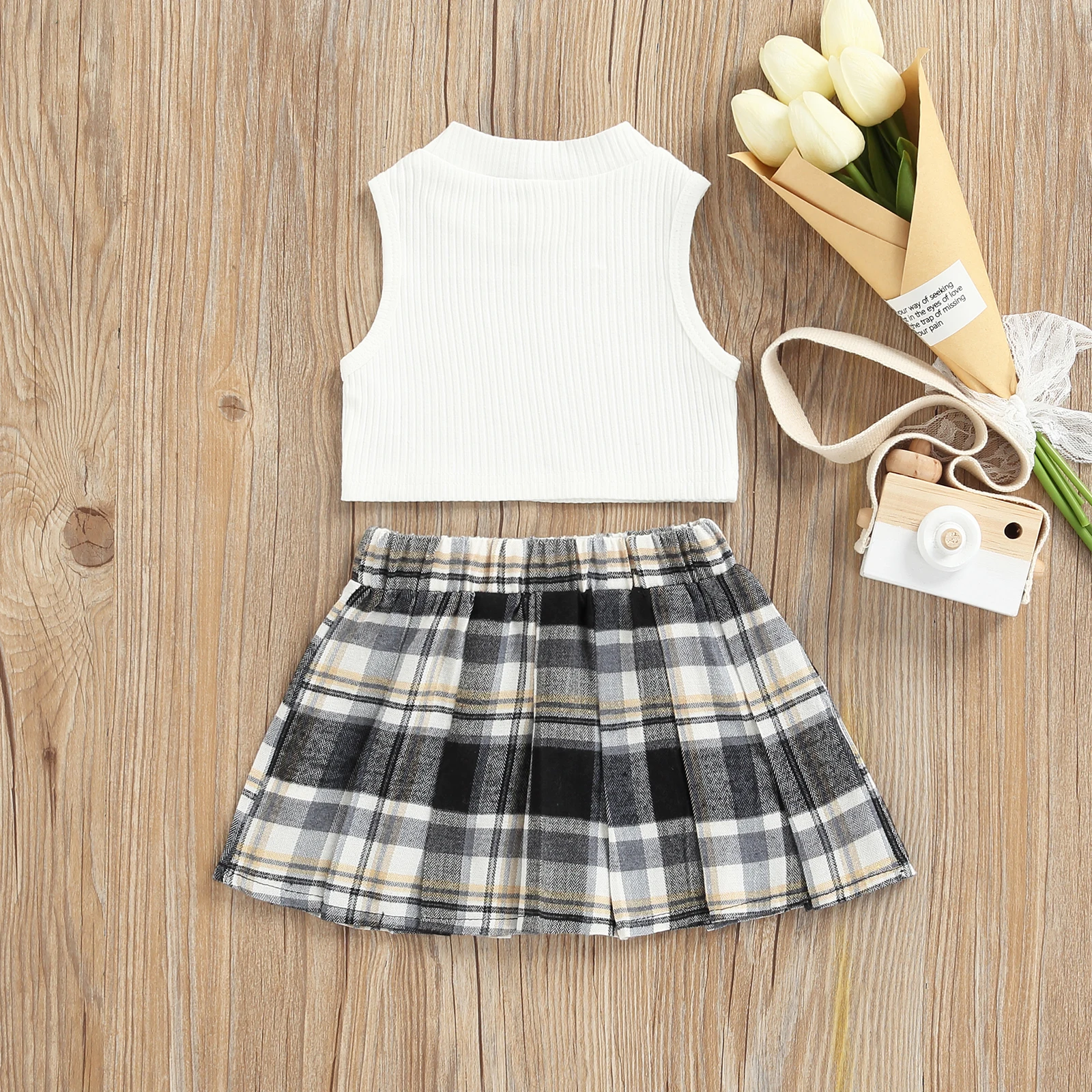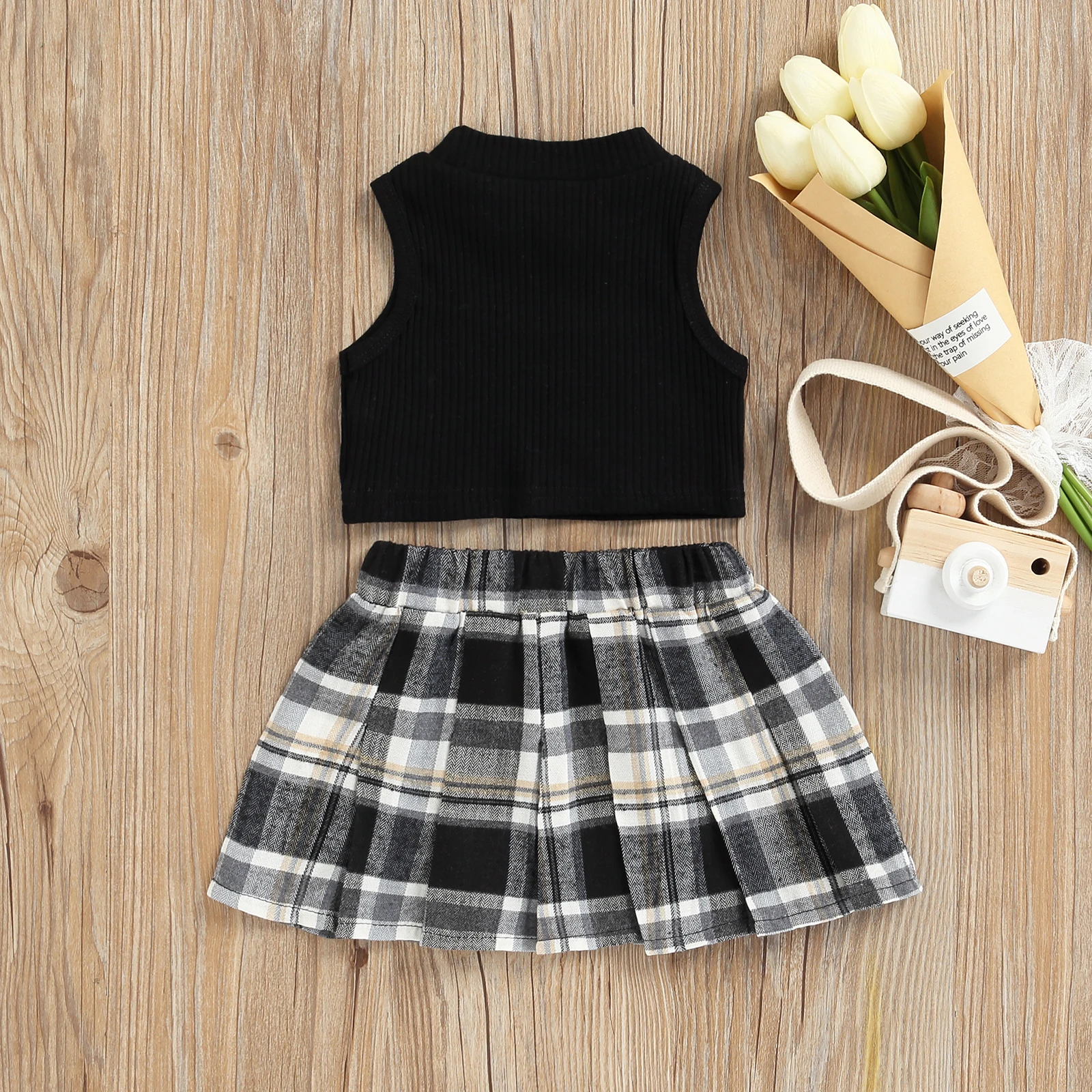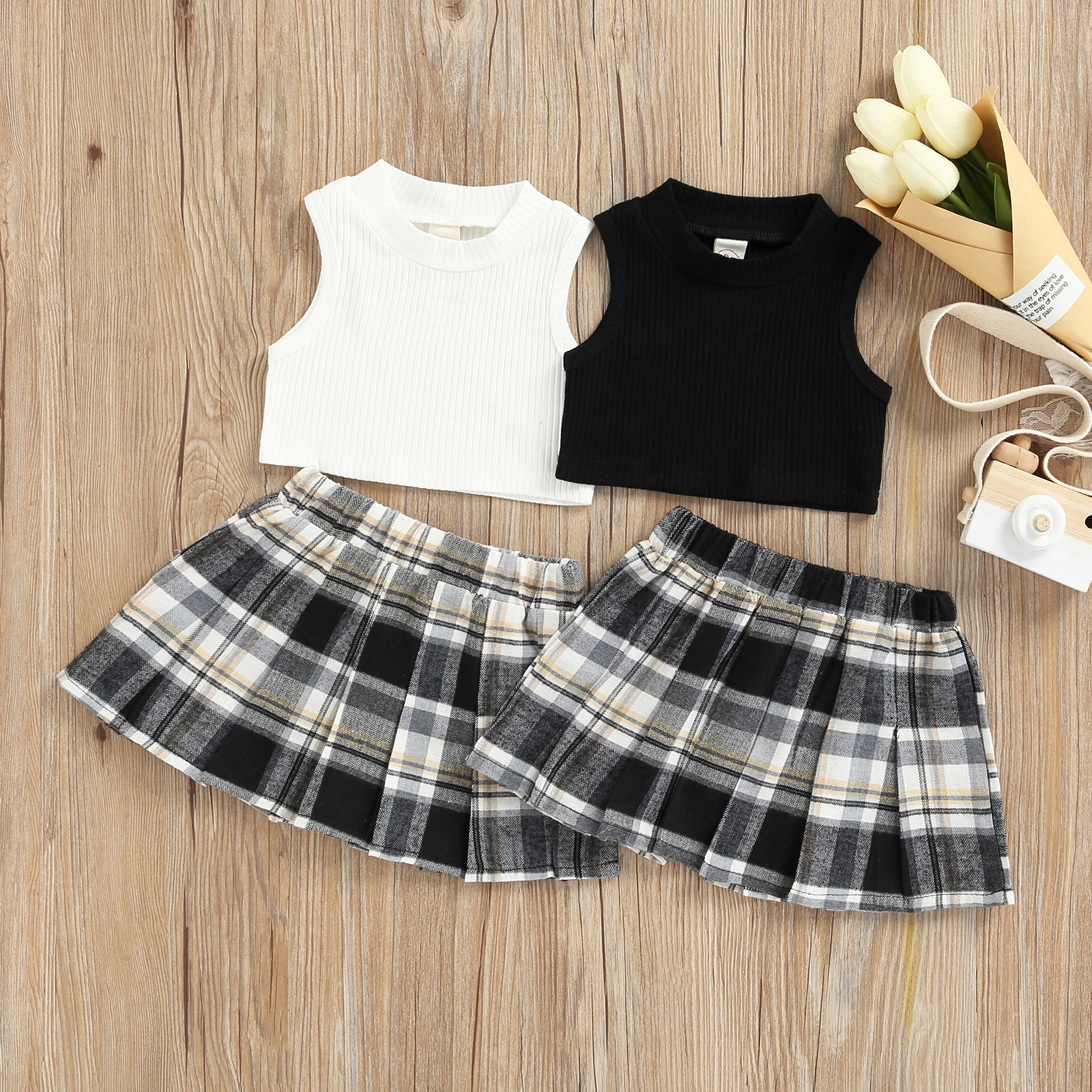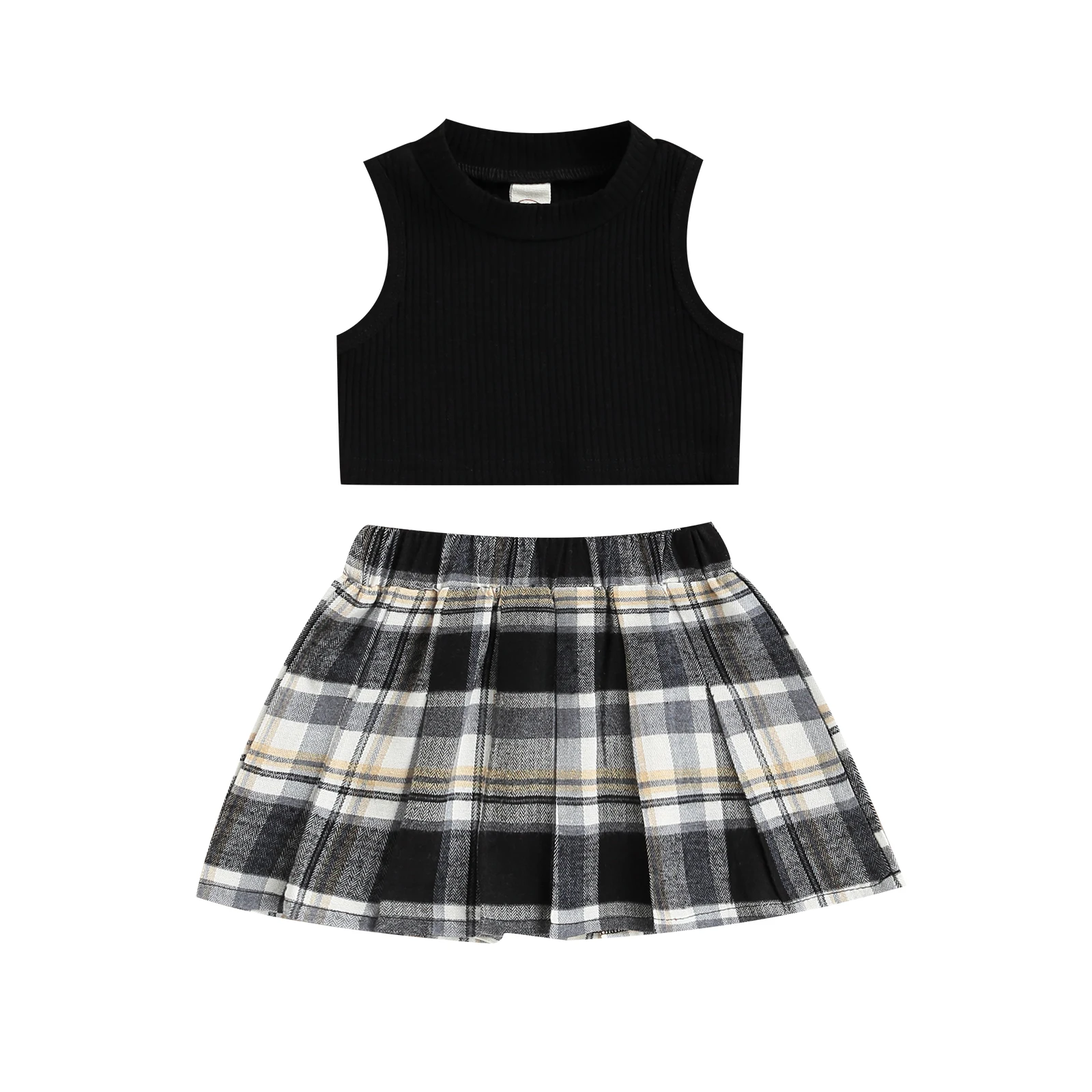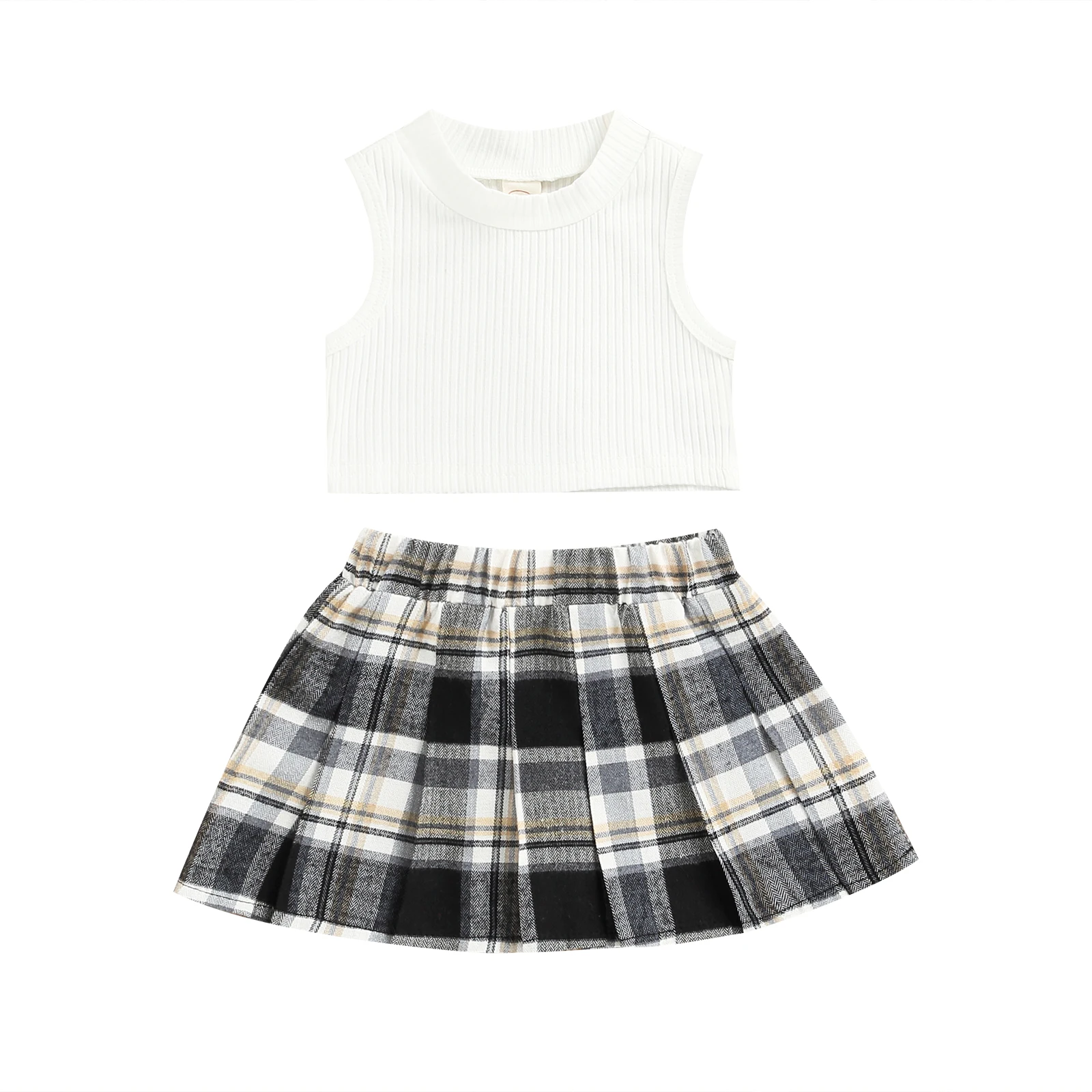 Модный комплект одежды для маленьких девочек, однотонный топ без рукавов в рубчик + эластичная резинка на талии, контрастный цвет Клетчатый Цвет, плиссированная юбка в клеткуПараметрыПодходит Пол: девочекТкань: полиэстерЦвет: белый/черныйСтиль: элегантный/красивыйДизайн: сплошной цвет, контрастный цвет Клетчатый ЦветРазмер: 6-9 месяцев/9-12 месяцев/1-2 года/От 2 до 3 лет/От 3 до 4 летРазмер (см) 80 Длина топа: 21 Бюст: 48 Длина юбки: 22 Возраст: 6-9 месяцев90 Длина топа: 22 Бюст: 50 Длина юбки: 24 Возраст: 9-12 месяцев100 Длина топа: 23 Бюст: 52 Длина юбки: 26 Возраст: Для детей от 1 до 2 лет110 Длина топа: 24 Бюст: 54 Длина юбки: 28 Возраст: От 2 до 3 лет120 Длина топа: 25 Бюст: 56 Длина юбки: 30 Возраст: От 3 до 4 летРазмер (дюйм) 80 Длина топа: 8,27 Бюст: 18,90 Длина юбки: 8,66 Возраст: 6-9 месяцев90 Длина топа: 8,66 Бюст: 19,69 Длина юбки: 9,45 Возраст: 9-12 месяцев100 Длина топа: 9,06 Бюст: 20,47 Длина юбки: 10,24 Возраст: Для детей от 1 до 2 лет110 Длина топа: 9,45 Бюст: 21,26 Длина юбки: 11,02 Возраст: От 2 до 3 лет120 Длина топа: 9,84 Бюст: 22,05 Длина юбки: 11,81 Возраст: От 3 до 4 летДружеские советыЦветПоскольку разные компьютеры отображают цвета по-разному, цвет фактического товара может незначительно отличаться от приведенных выше изображений, спасибо за понимание.ЗапахВсе наши товары совершенно новые, поэтому это нормально, что будет какой-то химический запах, Просто расслабьтесь, поставьте его на улицу в течение нескольких часов или просто положите в воду на полчаса, запах исчезнет.ГарантияМы стремимся к 100% удовлетворенности клиентов обслуживанием и опытом.Посылка включает в себя1 топ на бретелях + 1 юбка
