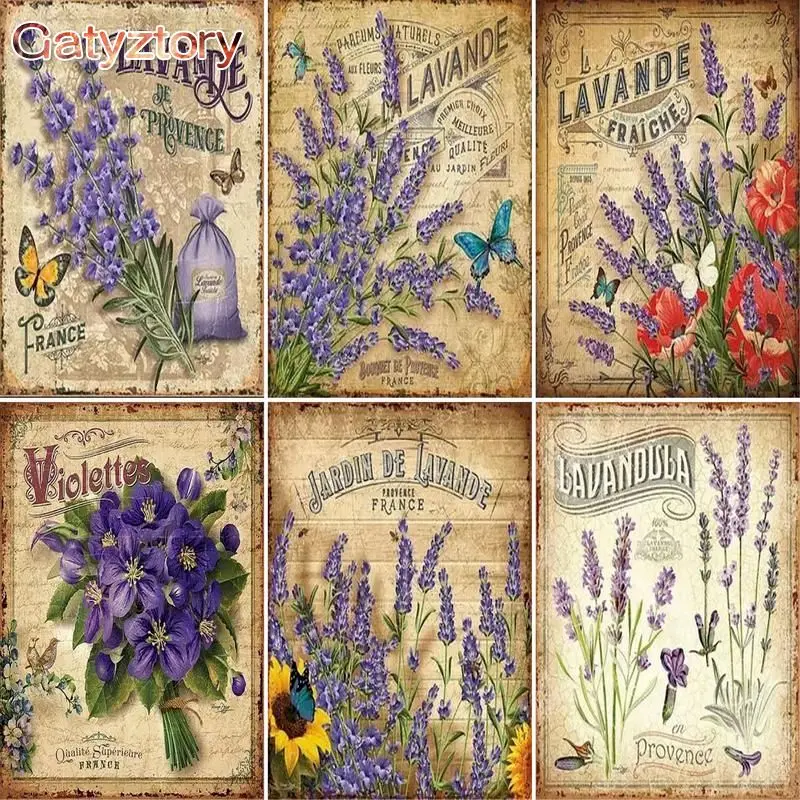 GATYZTORY 5D алмазная живопись, цветок лаванды, полностью квадратная Алмазная вышивка, пейзаж стразы, мозаика, Настенный декор