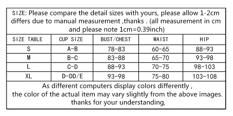 2.Из-за ручного измерения и эластичности ткани размеры могут составлять от 1 до 3 см. Обратите внимание при измерении.