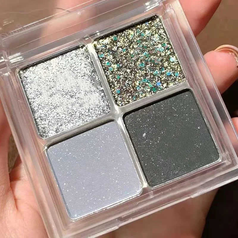Палетка блестящих теней для век, 4 цвета, серебристые и серые тени ...