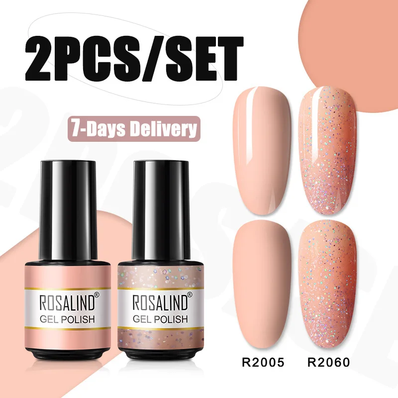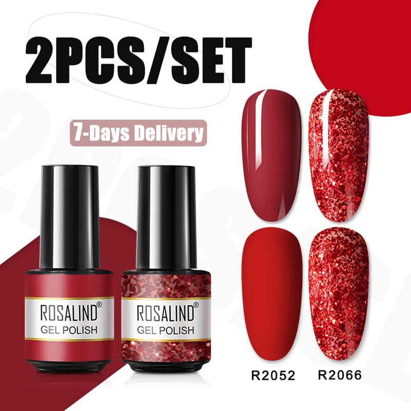 Набор гель-лаков для ногтей ROSALIND 2 шт.лот полуперманентный Гибридный гель лак требуется базовое и верхнее покрытие Набор лаков для ногтей