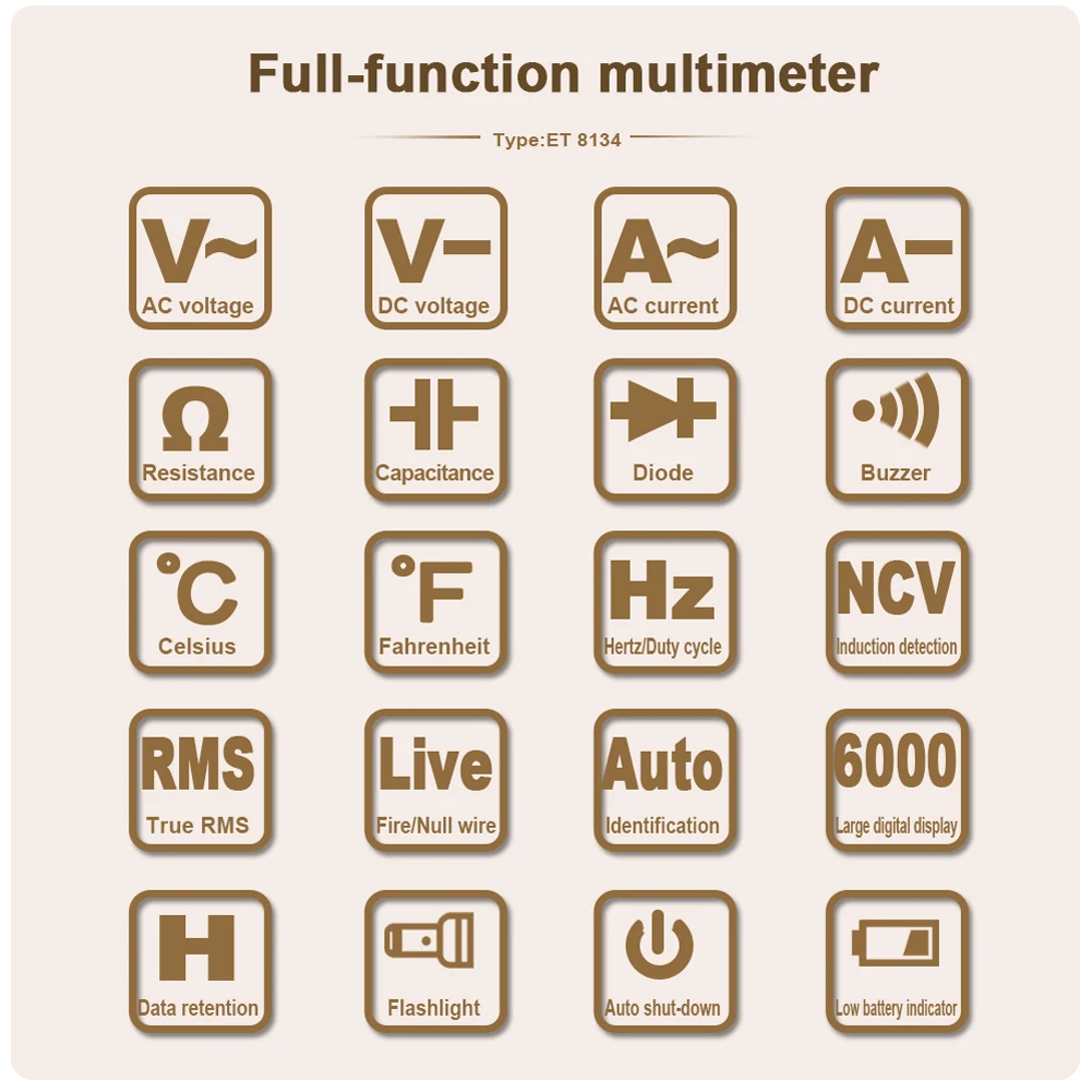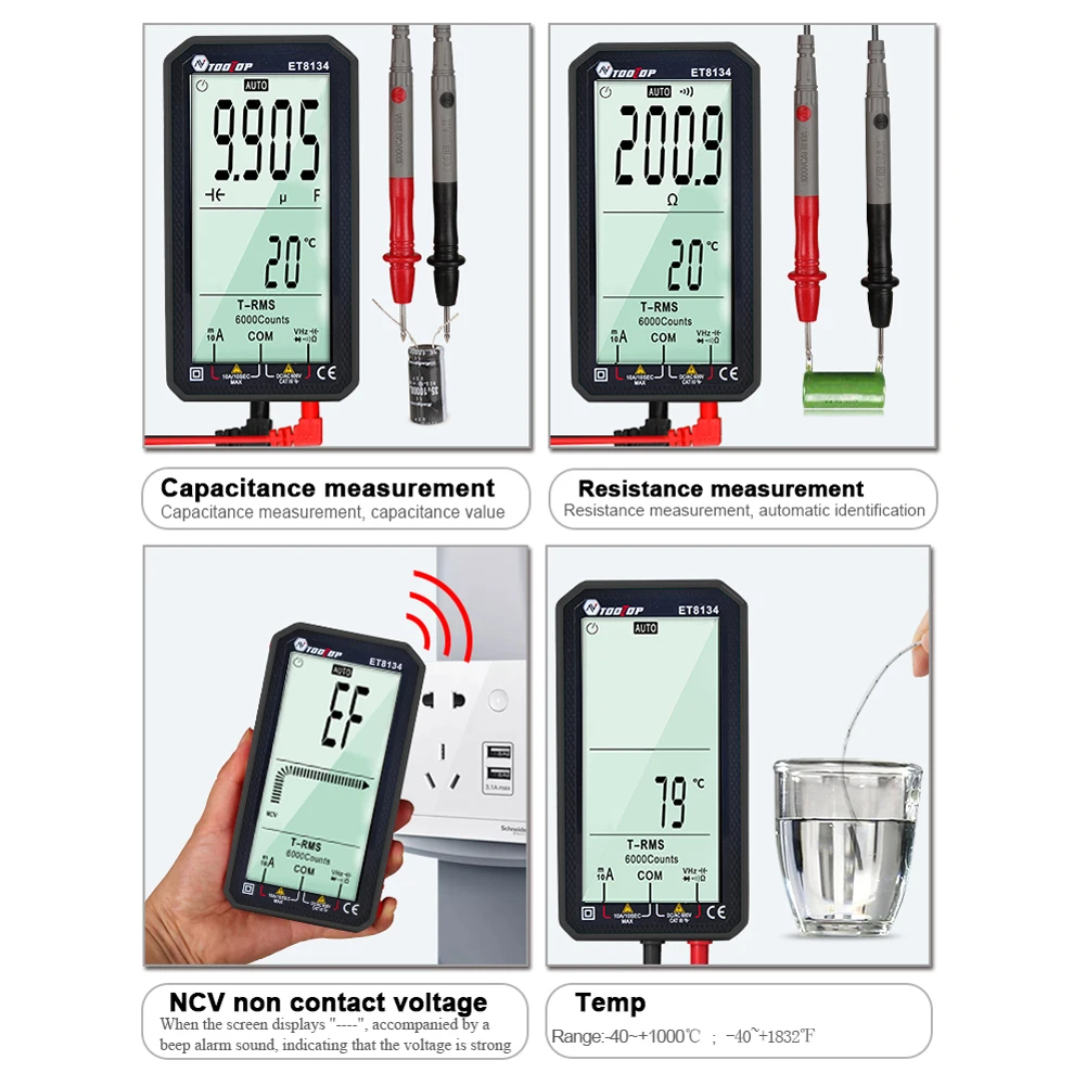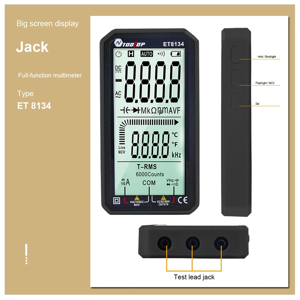 Мультиметр TOOLTOP ET8134 портативный с ЖК-дисплеем 4,7 дюйма