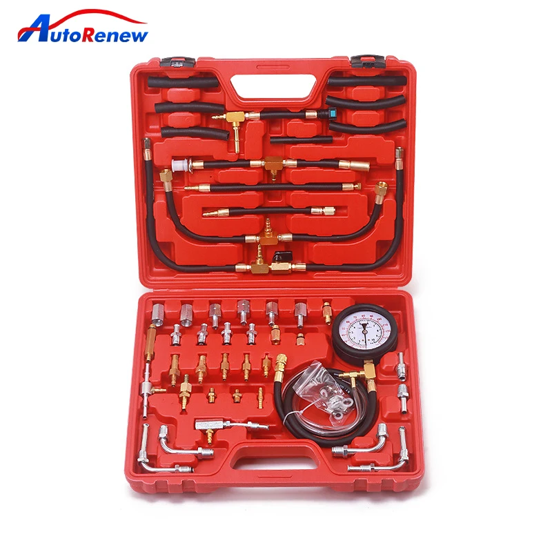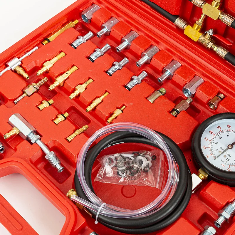 1. Тестер давления топлива с адаптером, шлангом и аксессуарами, подходит для большинства автомобилей, грузовиков и систем впрыска топлива.